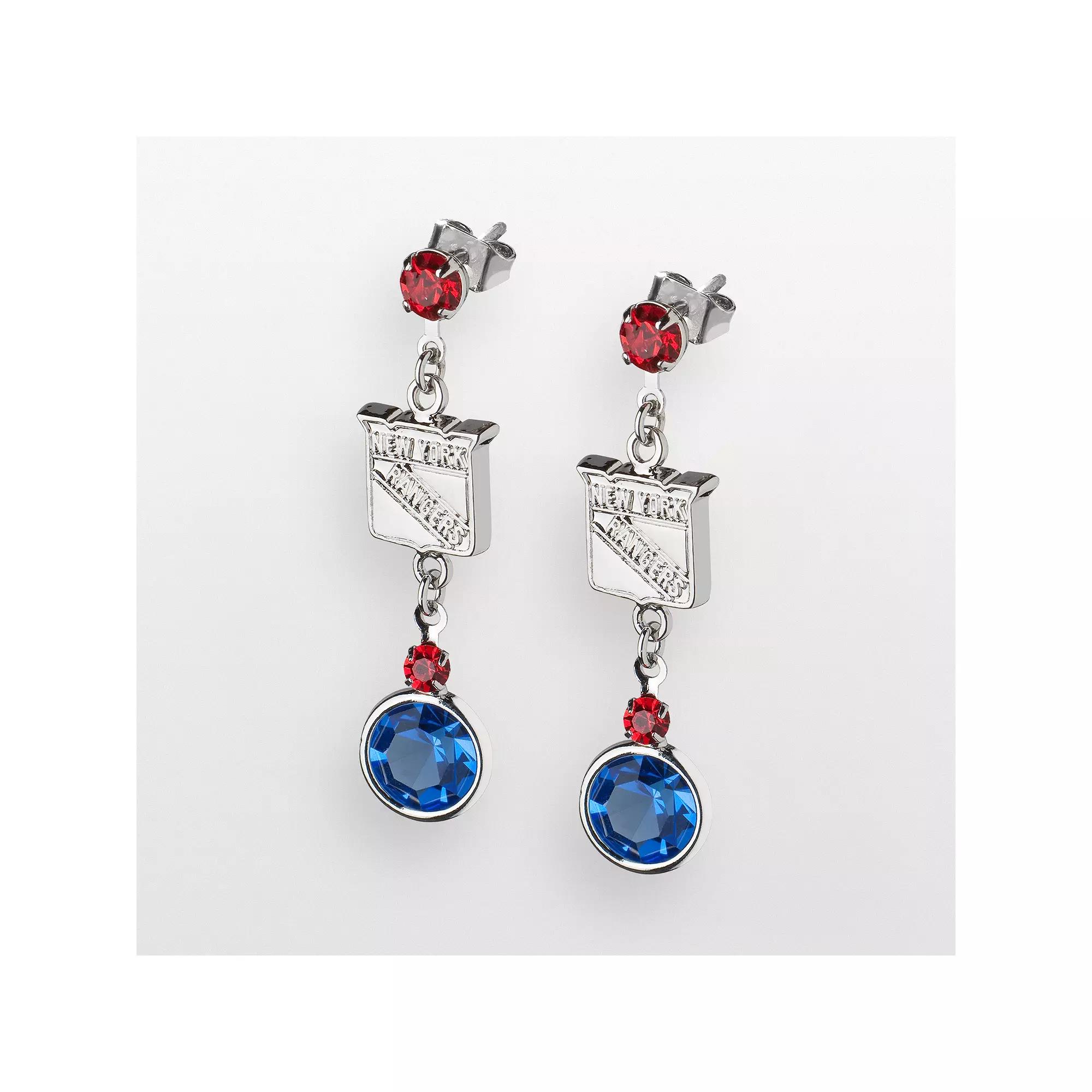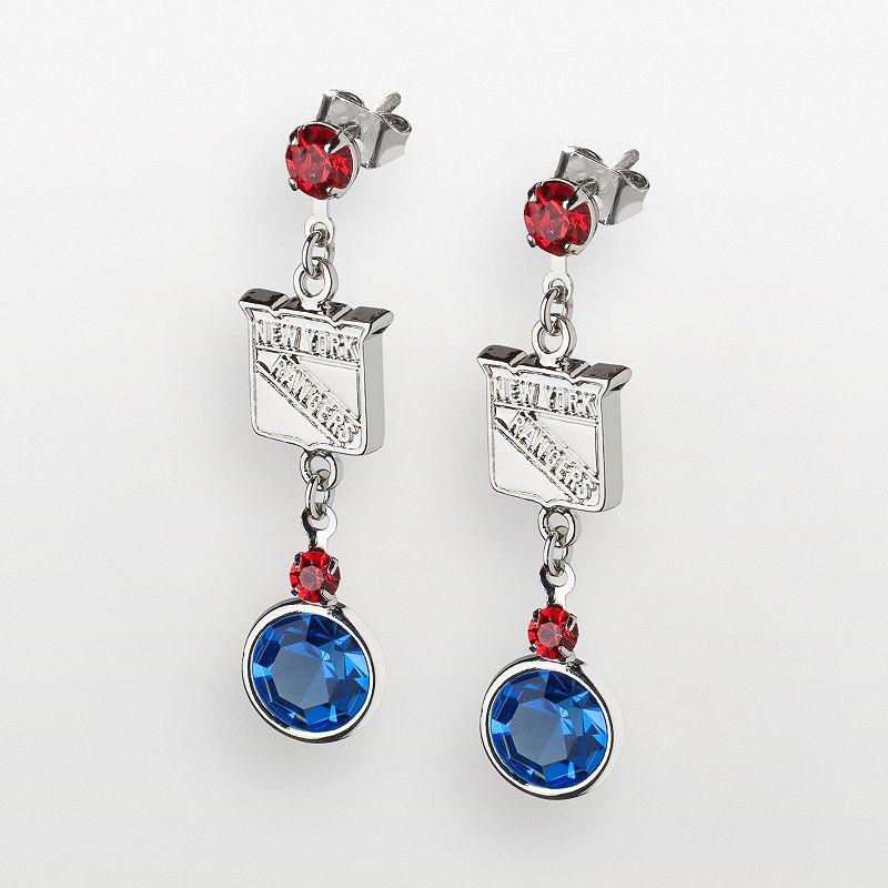 These New York Rangers silver-tone earrings show off your sporty sense of style. Featuring team logo links, and blue and red round-cut crystals, these linear drop earrings are the perfect finishing touch. Find more NHL jewelry and accessories at Kohls.com.Earring Details: Length: 1 7/16 in. Backings: post Metal: silver tone Crystal Details: Cut: round Color: blue & red Setting: bezel & prong Size: One Size. Color: Multicolor. Gender: female. Age Group: adult.