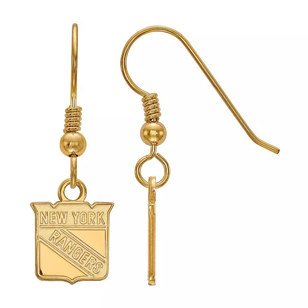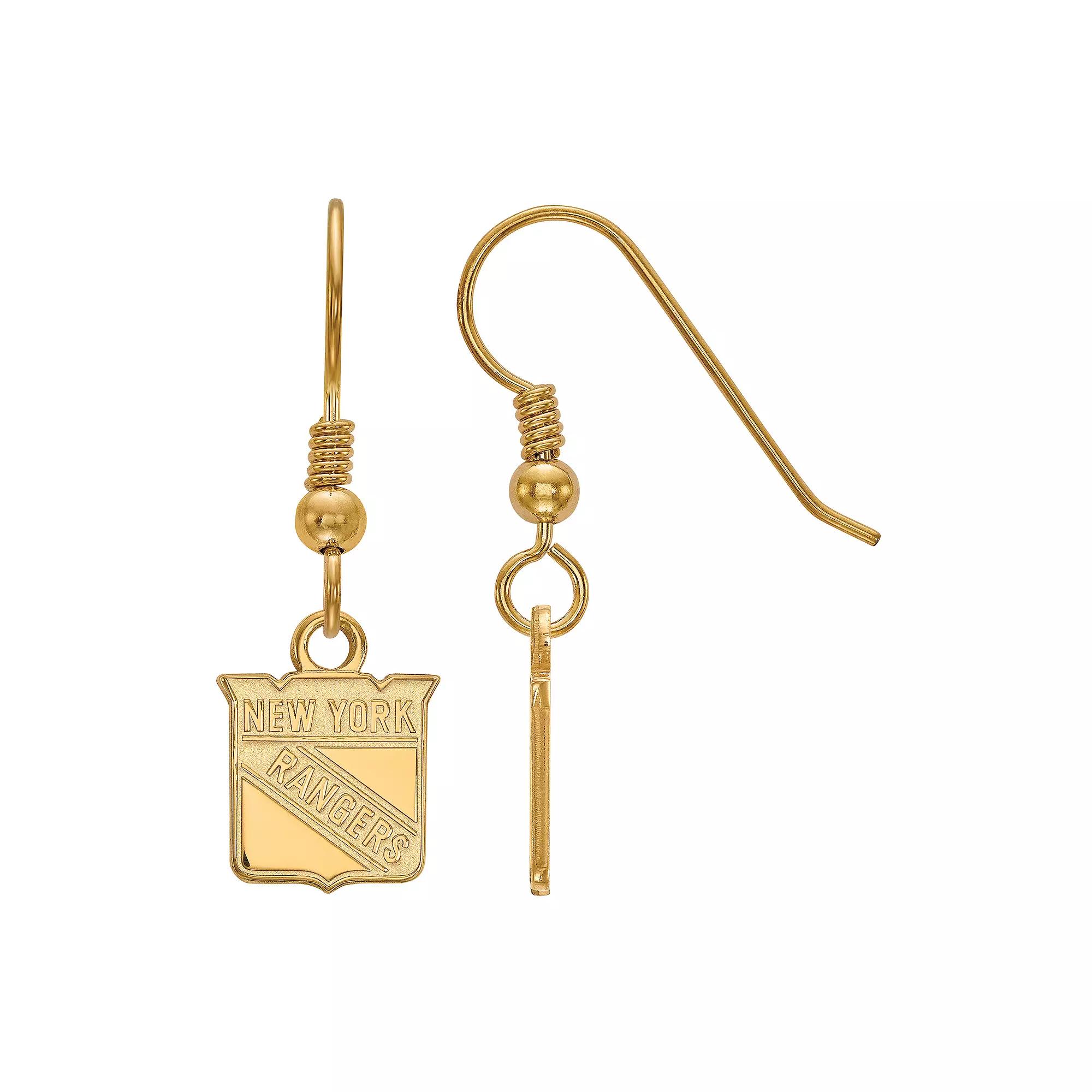 LogoArt New York Rangers Sterling Silver Small Logo Dangle Earrings, Women's, Gold Tone