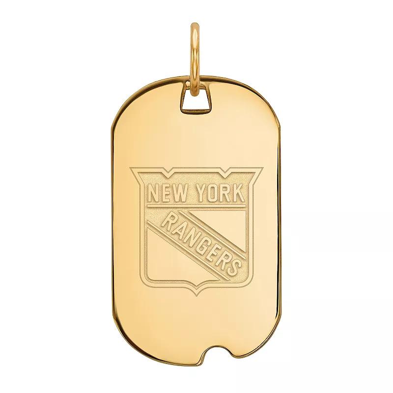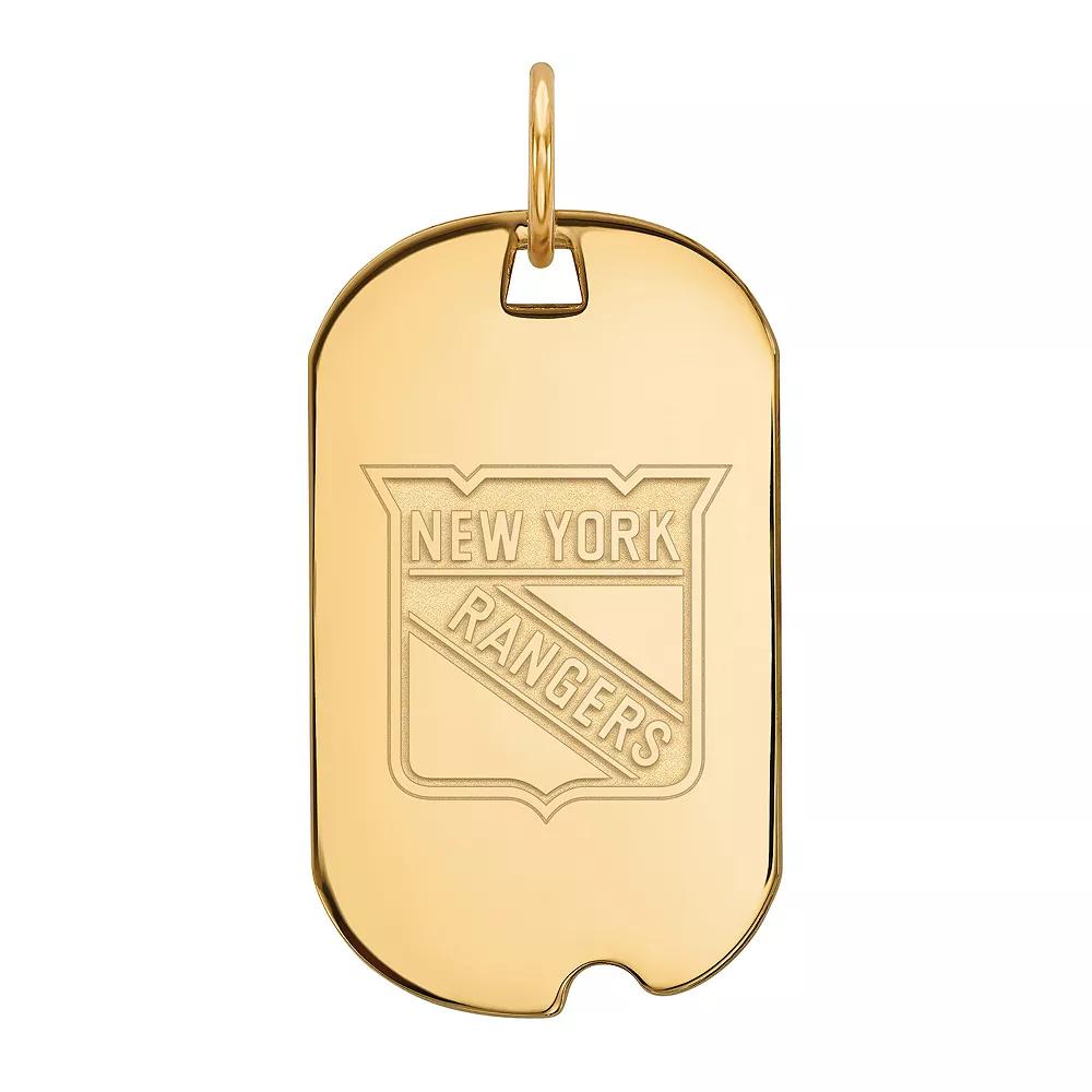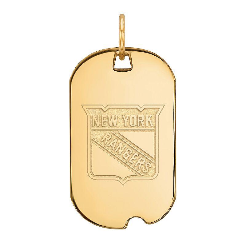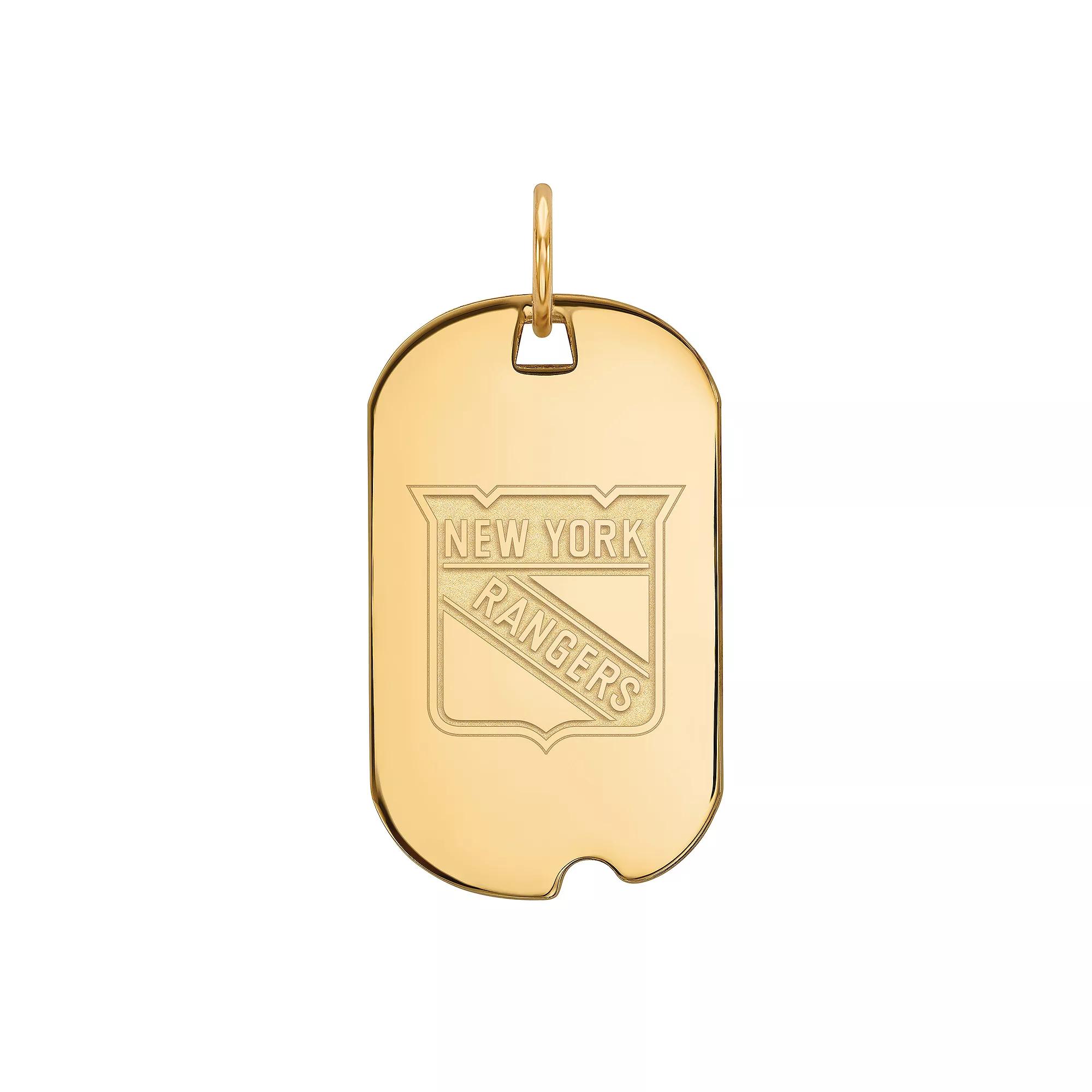 LogoArt New York Rangers Sterling Silver Small Logo Dog Tag Pendant, Women's, Size: 13MM, Gold Tone