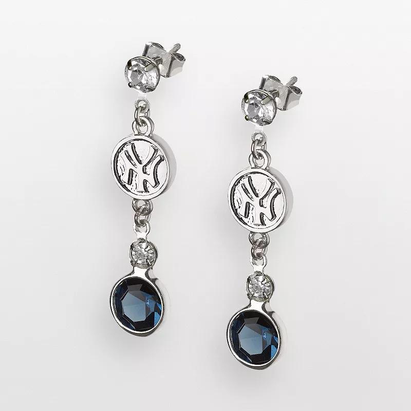 Earring Details: Length: 1 3/8 in. Backings: post Metal: silver tone Shop our full assortment of New York Yankees items here. When youre a fan, youre family! Size: One Size. Color: Blue. Gender: female. Age Group: adult.
