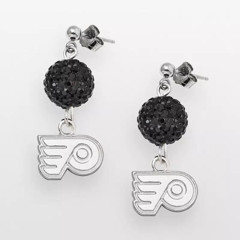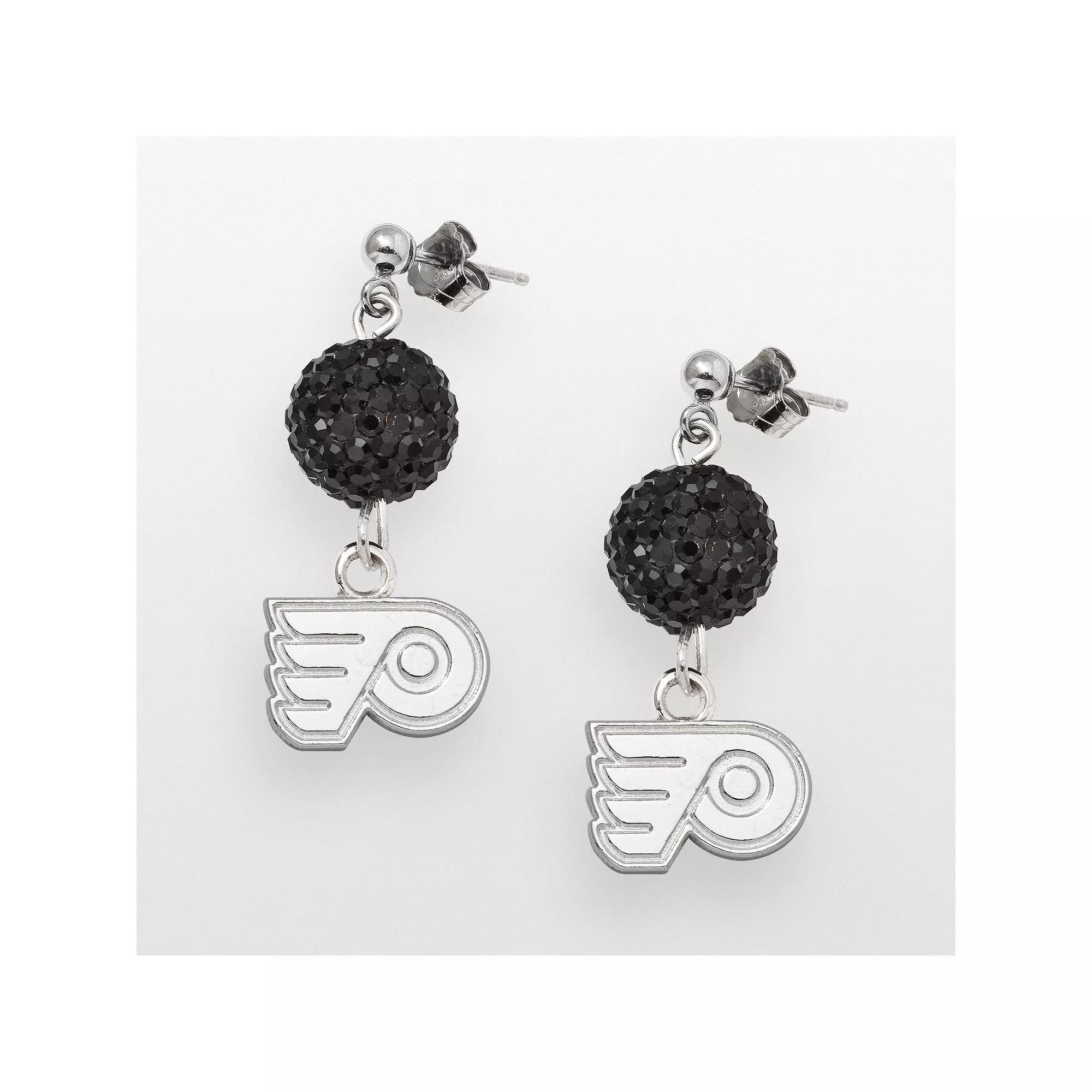 Team logo charms dangle from the balls for official appeal. Earrings come in a gift box. Details: 1 1/4-in. length Pierced Post backings Rhodium-plated sterling silver Model no. FLY069ERB-SS Size: One Size. Color: Black. Gender: female. Age Group: adult.