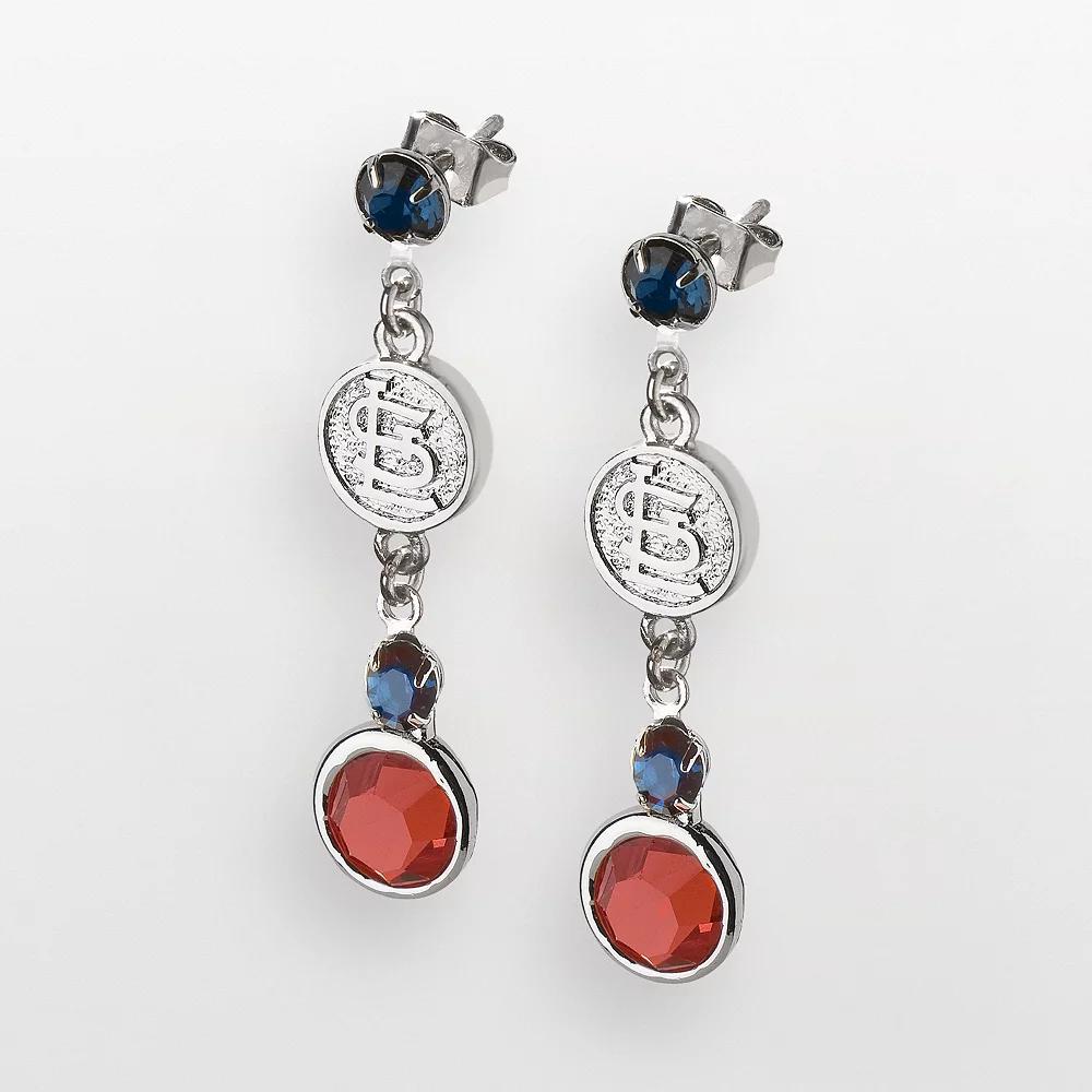 LogoArt St. Louis Cardinals Silver Tone Crystal Logo Drop Earrings, Women's, Multicolor