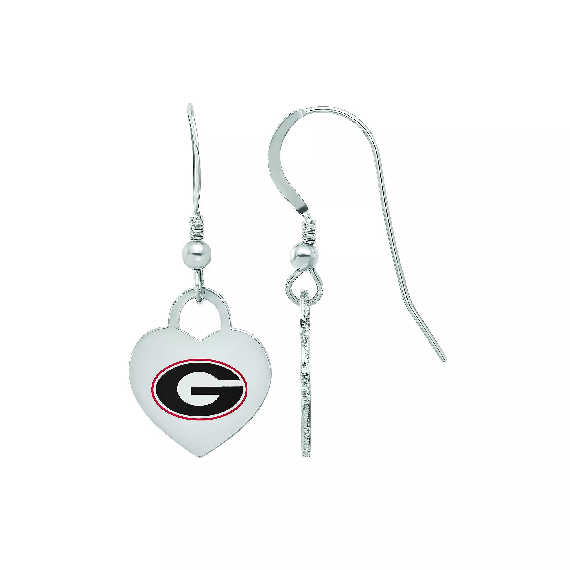 Show your team pride with these LogoArt Sterling Silver Georgia Enamel Heart Drop Earrings. FEATURES Dimensions: 15 mm x 12 mm Backings: Frenchwire Metal: sterling silver Plating: rhodium Finish: polished Packaging: boxed Nickel free Size: One Size. Gender: female. Age Group: adult.