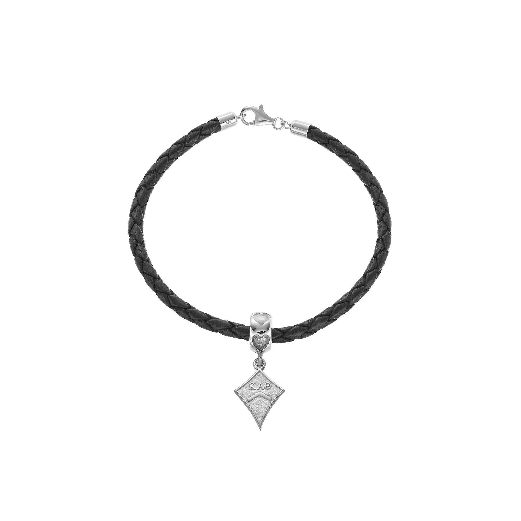 Featuring a sterling silver Kappa Alpha Theta kite charm dangling from a heart-accented bead, this braided leather bracelet is a stylish tribute to your sorority. Comes in a gift box.BRACELET DETAILS Length: 7.5 in. Clasp: lobster-claw Metal: sterling silver Size: 7.5". Color: Grey. Gender: female. Age Group: adult.