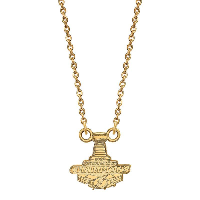 Celebrate the NHL champs in style with this LogoArt Tampa Bay Lightning 2020 Stanley Cup Champions pendant. Celebrate the NHL champs in style with this LogoArt Tampa Bay Lightning 2020 Stanley Cup Champions pendant. Pendant size: 13.7 mm x 14.7 mm Chain length: 18 in. Chain type: cable Nickel free Metal: sterling silver Finish: polished Packaging: boxed Size: 18. Color: Gold. Gender: female. Age Group: adult. Material: Gold Over Sterling.