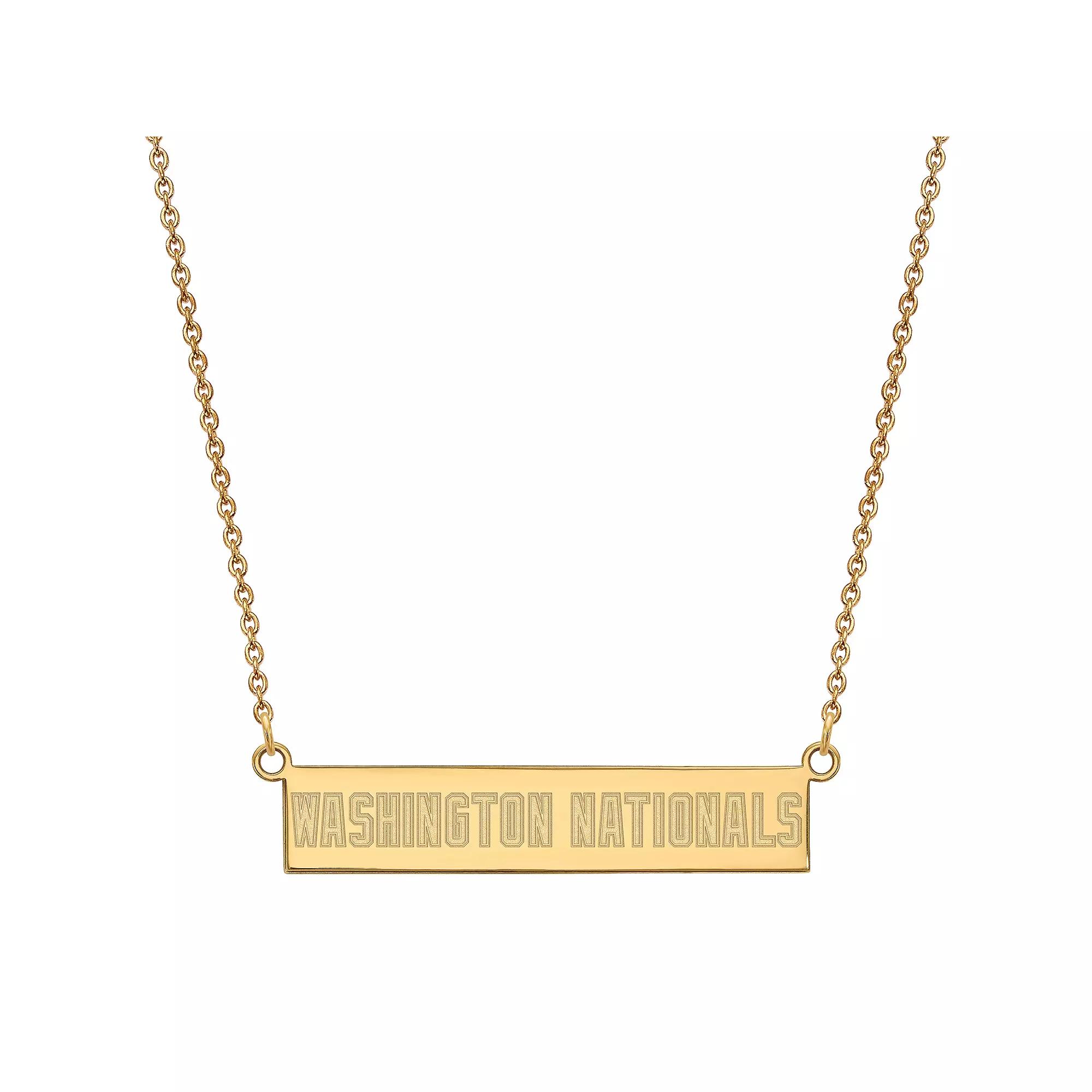 Support your favorite team with this LogoArt Washington Nationals bar necklace. Support your favorite team with this LogoArt Washington Nationals bar necklace. NECKLACE DETAILS Pendant size: 36 mm x 7 mm Chain length: 18 in. Chain type: cable Metal: sterling silver Finish: polished Nickel free Packaging: boxed Officially licensed Size: One Size. Color: Gold. Gender: female. Age Group: adult. Material: Gold Over Sterling.