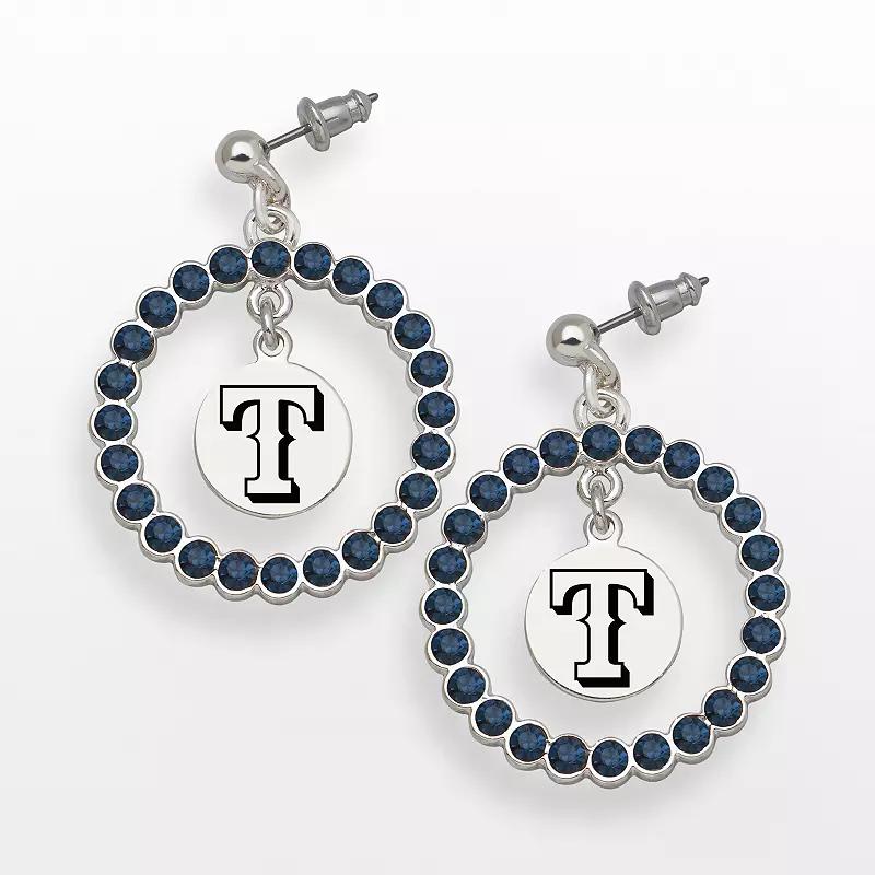 Earring Details: Length: 1.06-in. Backings: post Metal: silver tone Features: dangling logo charms with black enamel Model no. RAN067ER-CR Crystal Details: Cut: round Color: blue Setting: bezel Size: One Size. Gender: female. Age Group: adult.