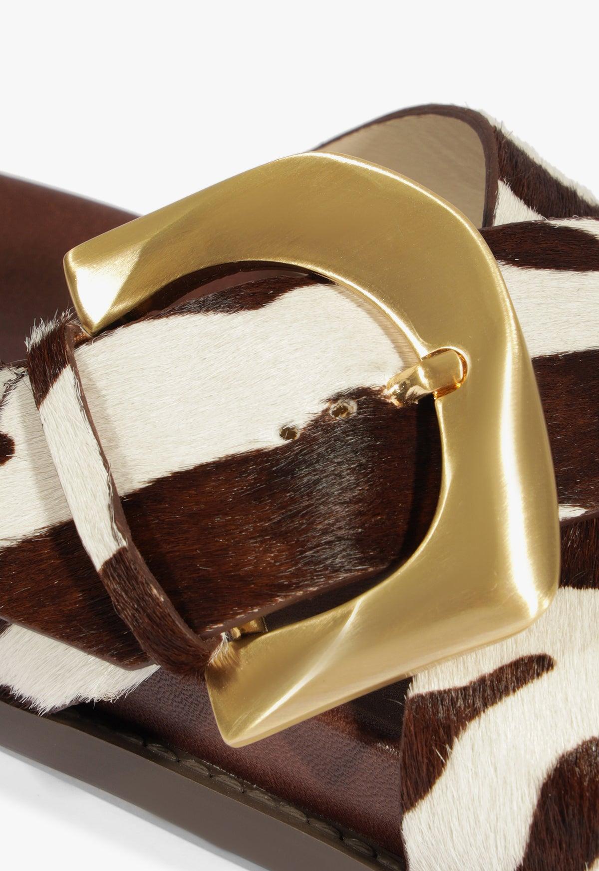Designed for days that demand ease without sacrificing style, the Lois sandal pairs a structured silhouette with bold detailing. Wide leather straps crisscross over the foot, secured by a statement gold buckle that catches the light. The flat sole keeps things grounded while the luxe materials do the talking. Every step with a pair of Lois' says, "I've got this."