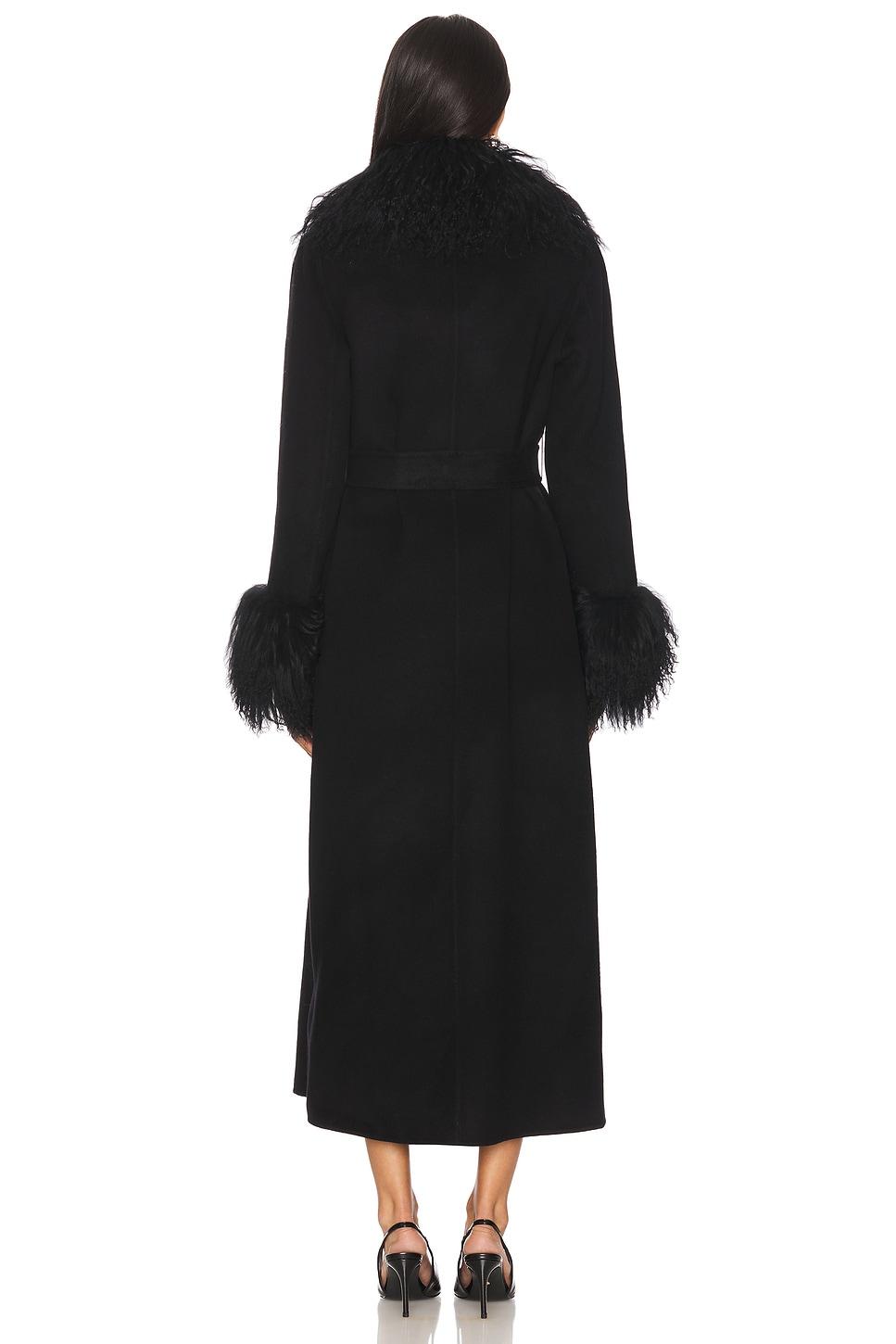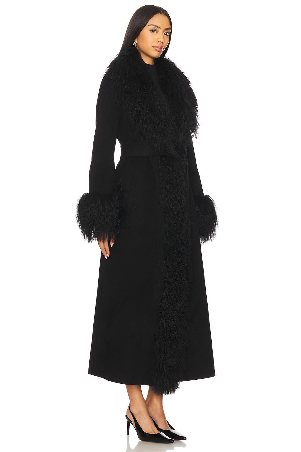 Self: 100% woolContrast Fabric: 100% dyed lamb fur. Made in ChinaFur Origin: China. Specialist dry clean only. Open front styling with self-tie belt closure. Front angled pockets. Detachable fur trim. Midweight melton fabric with real lamb fur trim. This item is not available for international export. This product contains animal fur and may be subject to shipping restrictions based on your address at checkout. Revolve Style No. DUCR-WO14. Manufacturer Style No. LOLA-BLACK.