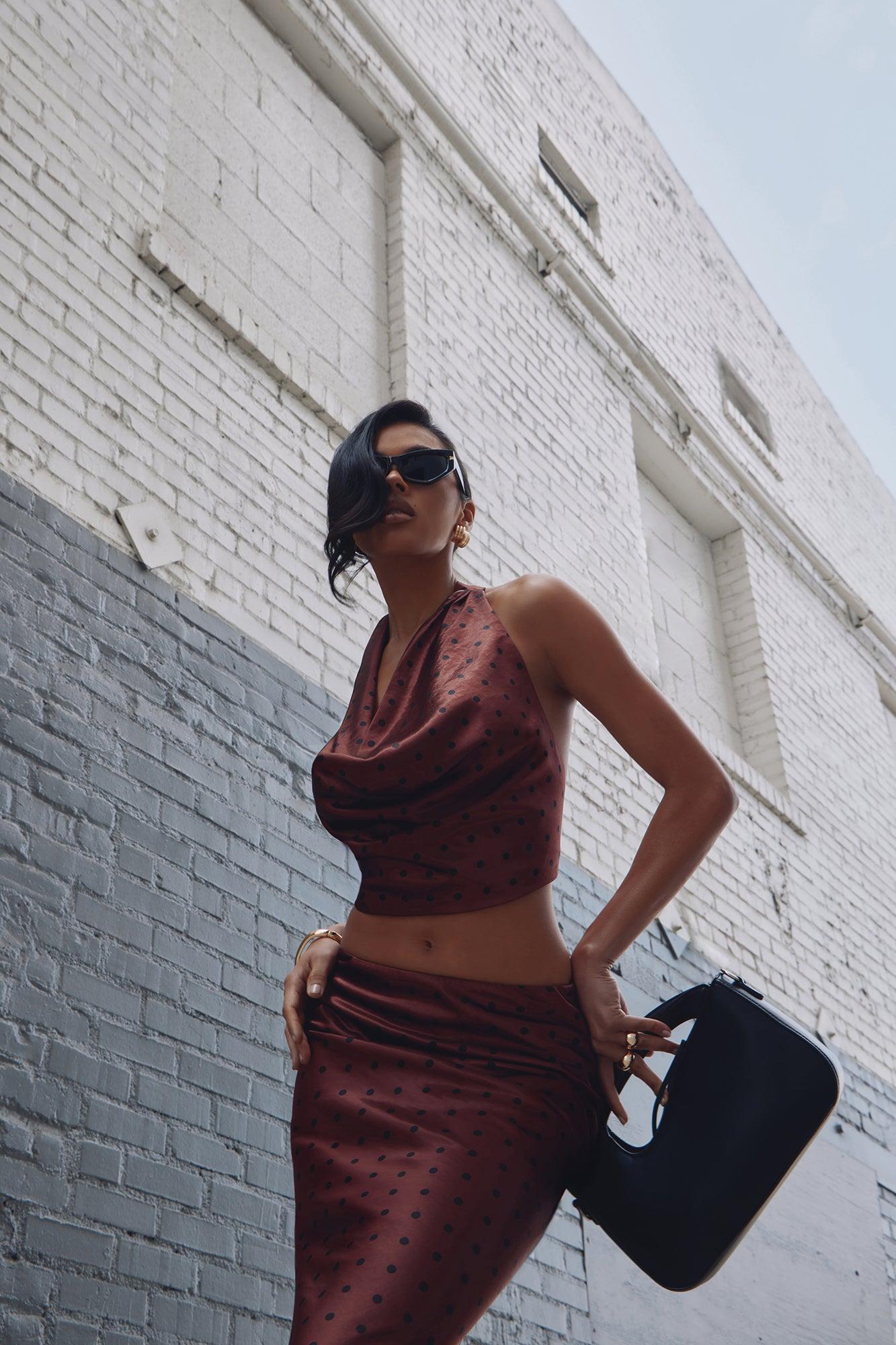 Lolita Satin Polka Dot Maxi Skirt Set - Burgundy