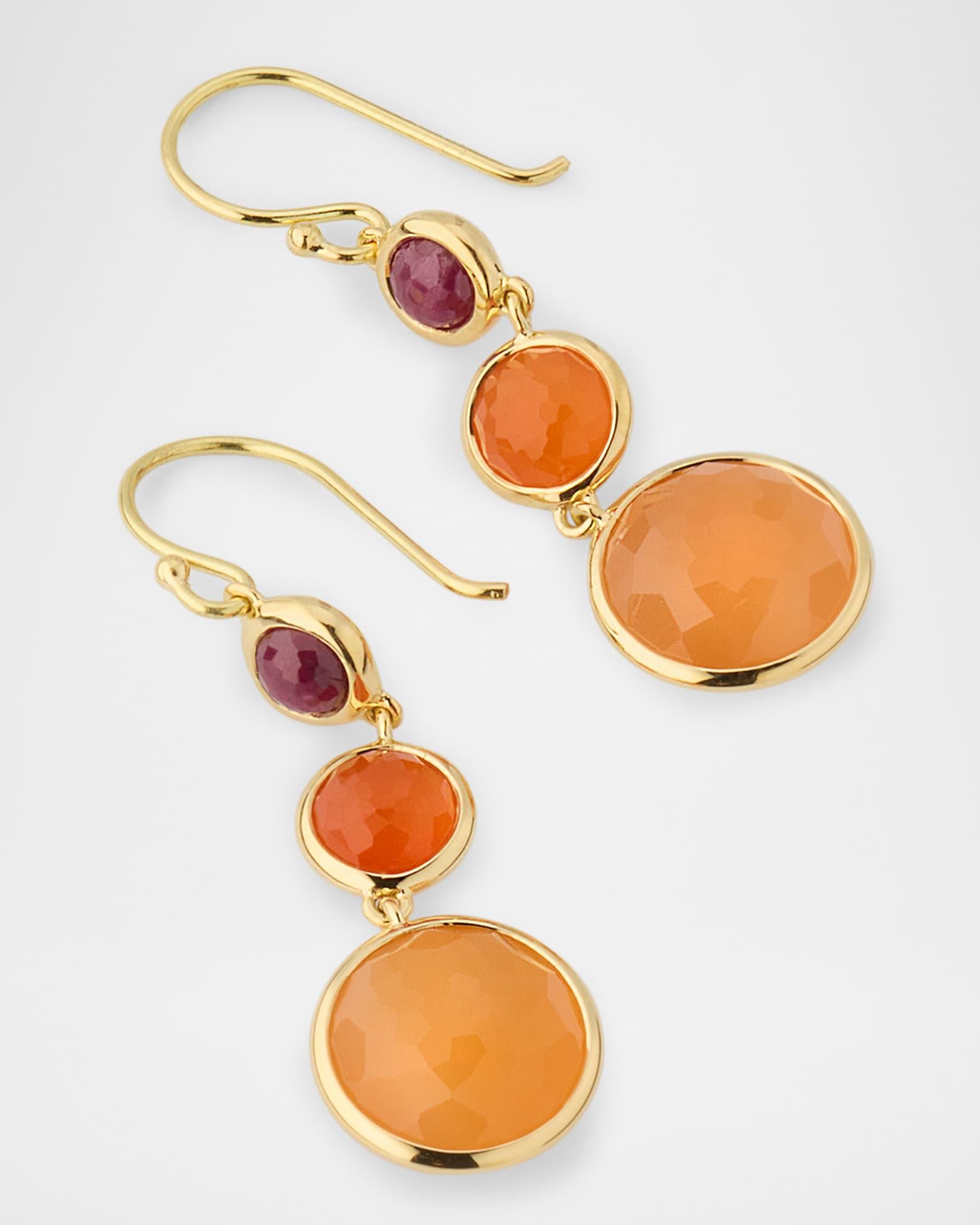 Ippolita drop earrings from the Lollipop Collection 18-karat yellow gold Two-tone orange carnelian and African ruby For pierced ears Spot clean Imported