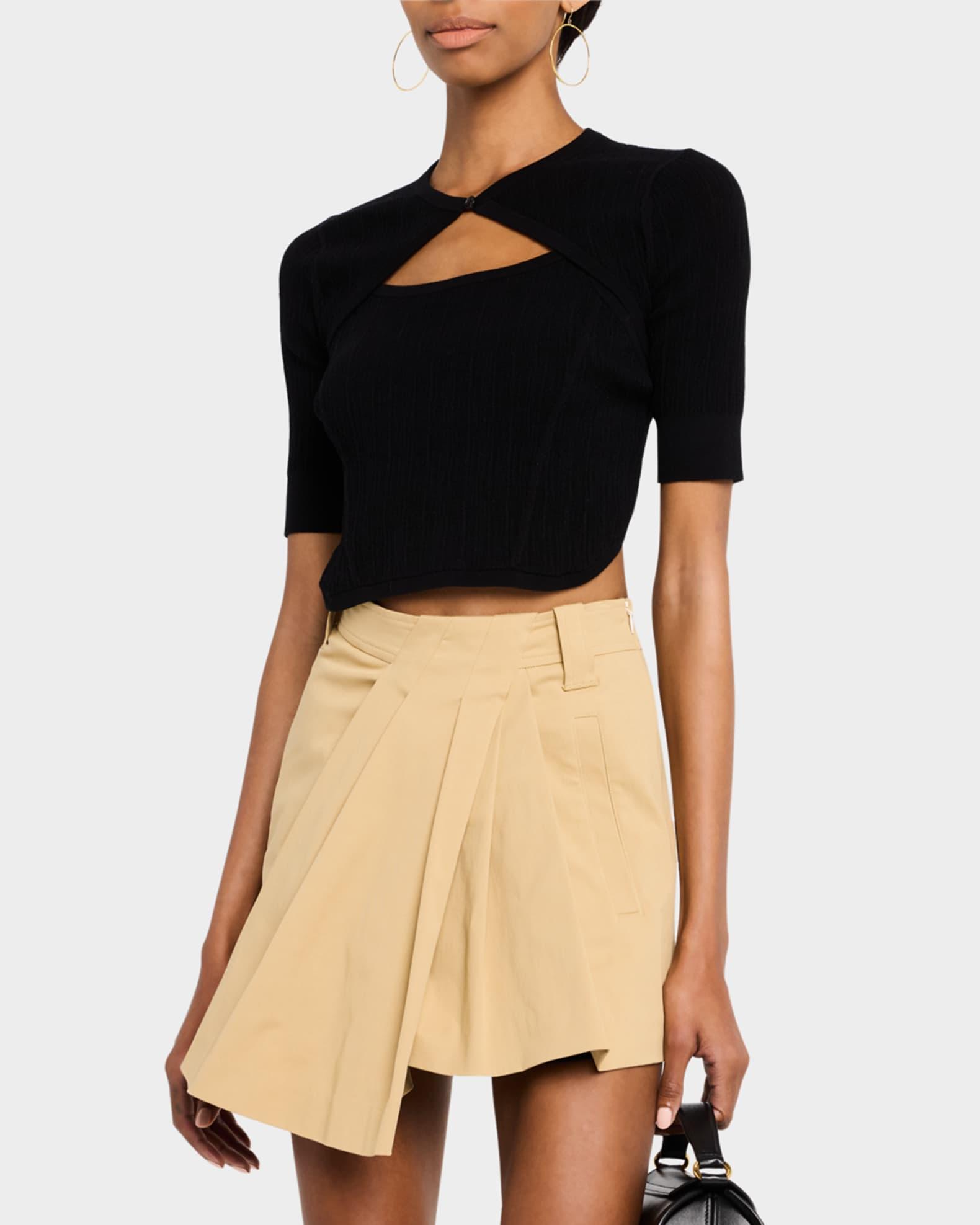 A.L.C. "Loma" textured top featuring a removable short-sleeve shrug V neckline Sleeveless Cropped fit Self-tie back Polyester Dry clean Imported