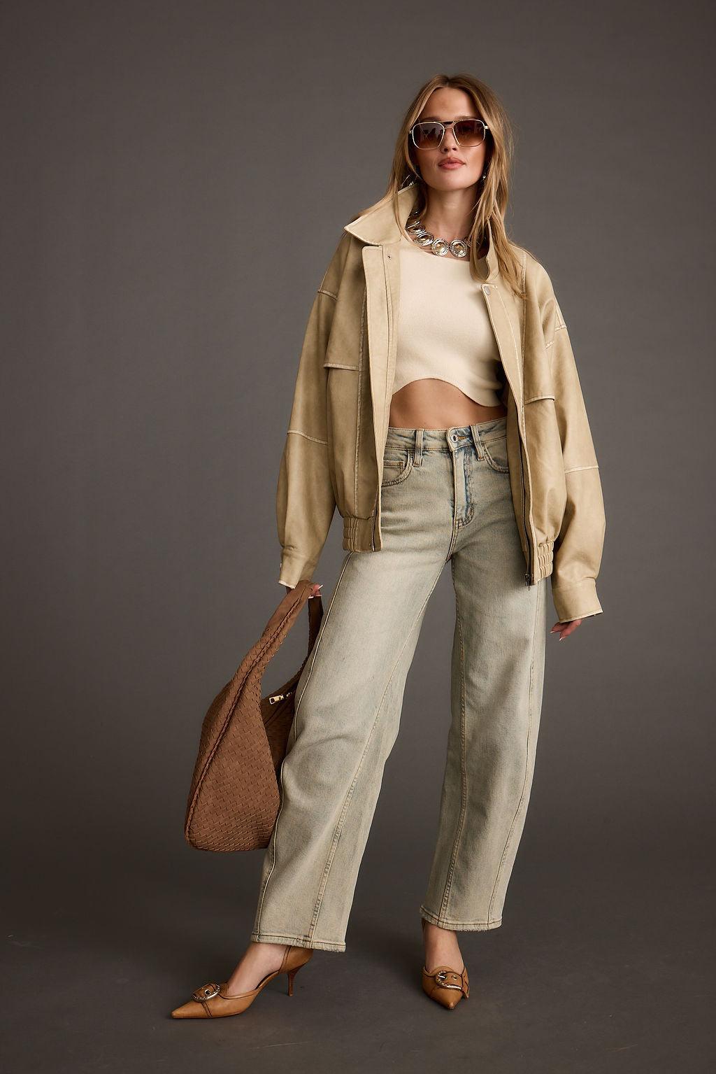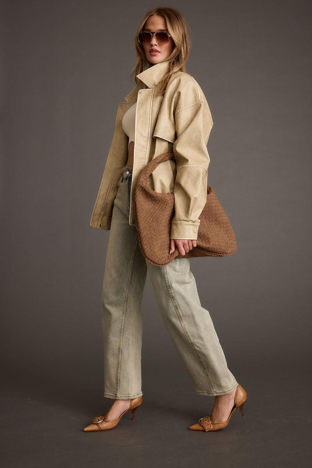 Based on the Best Selling London Calling jackets, we’ve reinvented this new cold weather essential in Light Taupe. Everyone needs a staple leather jacket and the new London Calling Light Taupe Oversized Faux Leather Jacket is just that. The oversized fit and soft faux leather makes for the ideal layering fall piece.