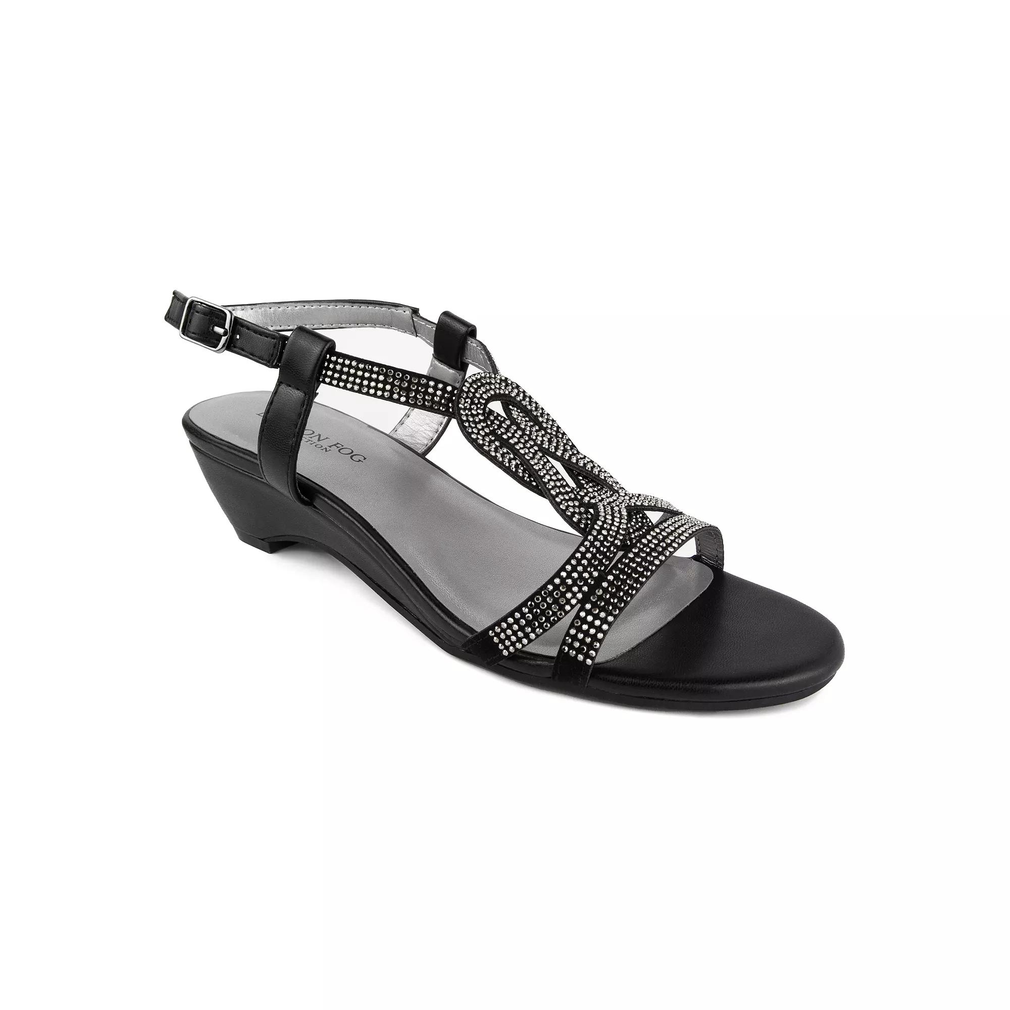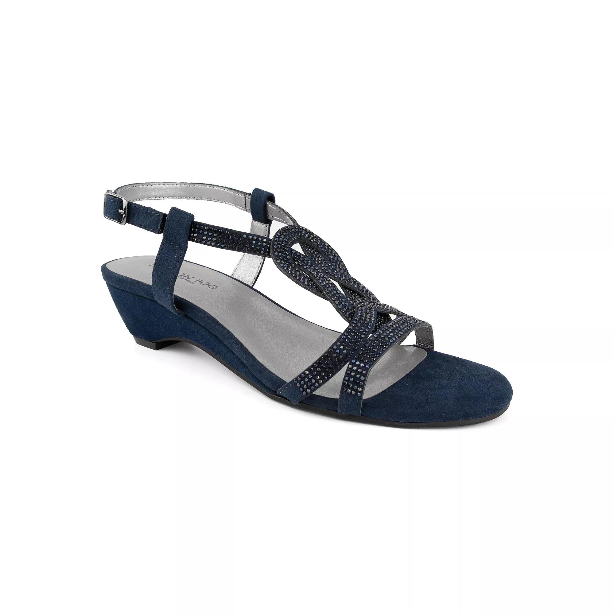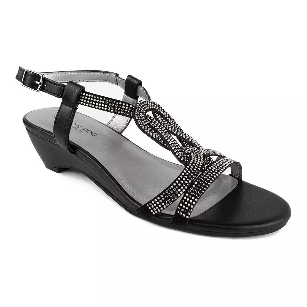 Stand out in elegant style wearing these London Fog Meadow women's wedge sandals.Click this FOOTWEAR GUIDE to find the perfect fit and more! Stand out in elegant style wearing these London Fog Meadow women's wedge sandals. Click this FOOTWEAR GUIDE to find the perfect fit and more! SANDAL FEATURES Rhinestone accents on straps Low wedge heel for subtle height Durable rubber outsoleSANDAL CONSTRUCTION Micro suede, PU upper Manmade lining Memory foam midsole TPR outsoleSANDAL DETAILS Open toe Buckle closure Foam footbed 1.5-in.heel Size: 9.5. Color: Blue. Gender: female. Age Group: adult.