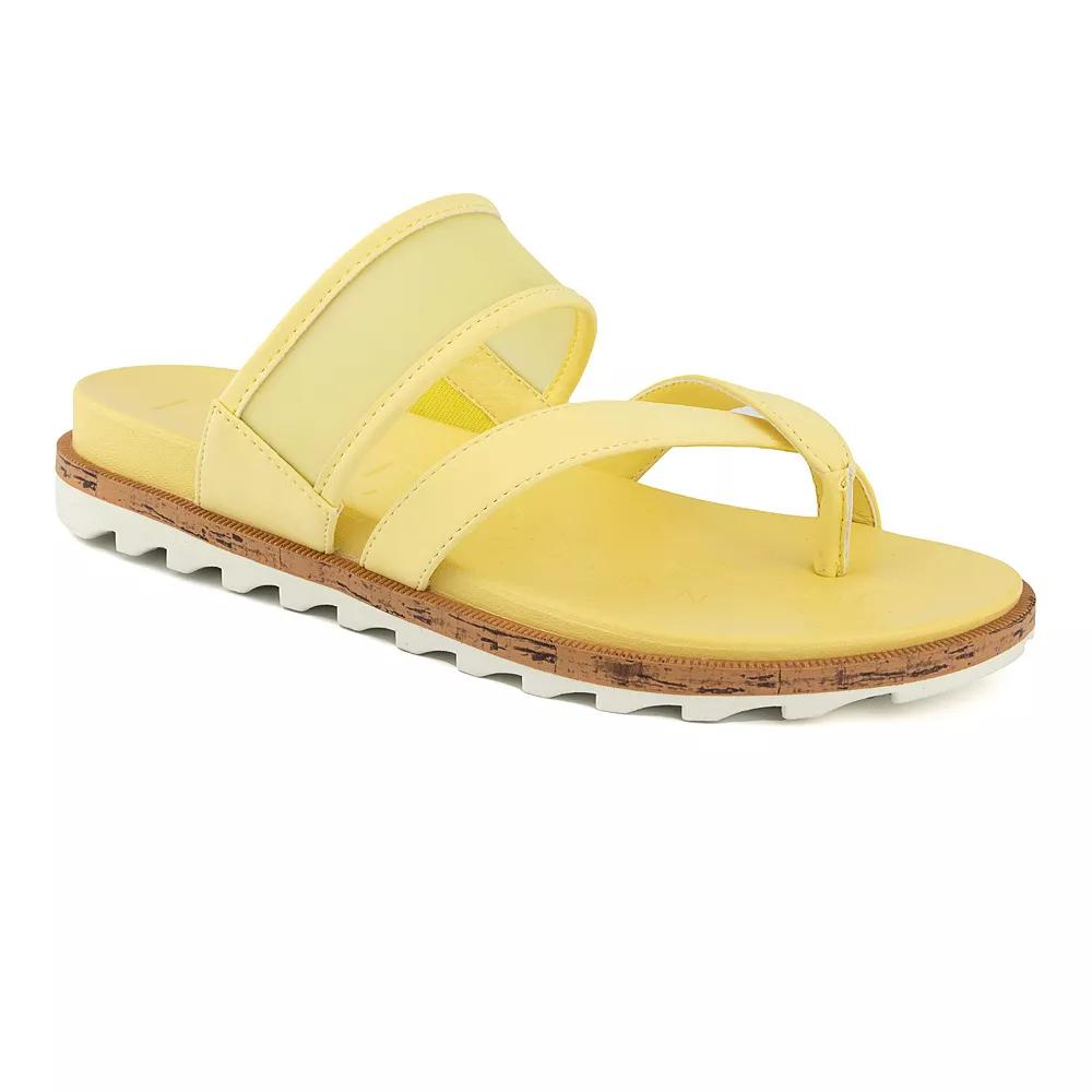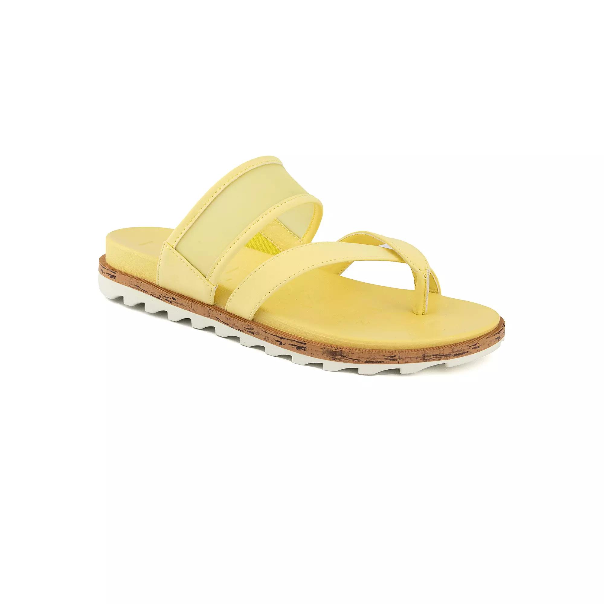 Youll have fun in the sun with these London Fog Stelanie womens thong sandals. Click this FOOTWEAR GUIDE to find the perfect fit and more! Youll have fun in the sun with these London Fog Stelanie womens thong sandals. Click this FOOTWEAR GUIDE to find the perfect fit and more! SHOE FEATURES Sheer band design Slip-on for easy on and offSHOE CONSTRUCTION Nubuck upper Pigskin lining EVA outsoleSHOE DETAILS Open toe Slip-on Cork footbed Size: 9.5. Color: Yellow. Gender: female. Age Group: adult. Material: Synthetic.