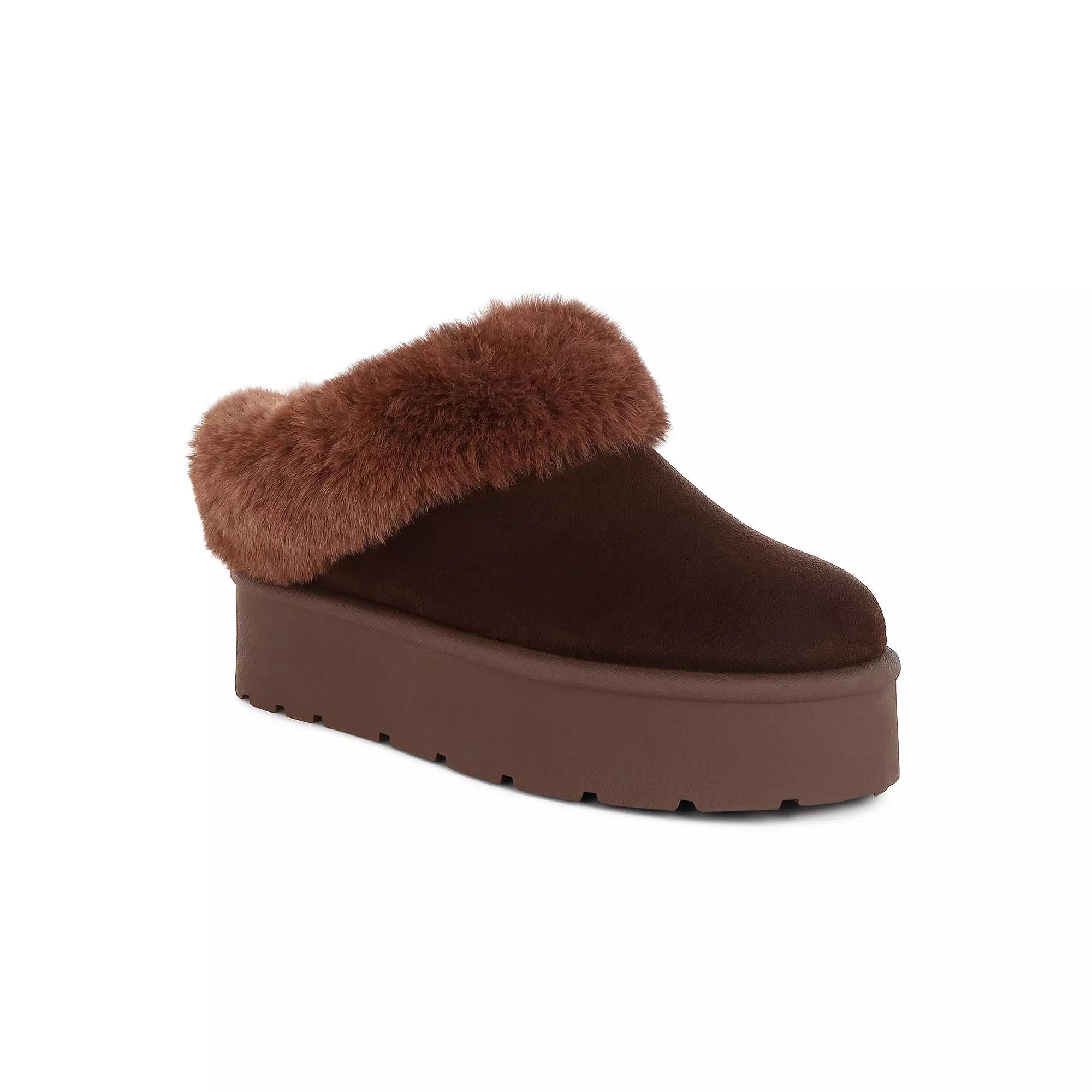 Keep your feel warm and comfortable in these London Rag Aniso women's faux fur slip-on winter boots. With a slip-resistant outsole and faux fur construction, you'll be able to brave the cold weather. Click this FOOTWEAR GUIDE to find the perfect fit and more! - https://www.kohls.com/feature/shoesizeguide.jsp. FEATURES: Comfortable design, Faux fur trim. FIT & SIZE: 6.5-in. shaft, 6.5-in. circumference. MATERIAL & CARE: Microfiber upper, TPR outsole, Polyurethane midsole and lining, Polyurethane footbed, Spot clean. DETAILS: Slip-on, Slip-resistant outsole, Round toe, 1-in. platform, 1.5-in. heel, Imported. Size: 7.5. Color: Brown. Gender: female. Age Group: adult. Material: SYNTHETIC.
