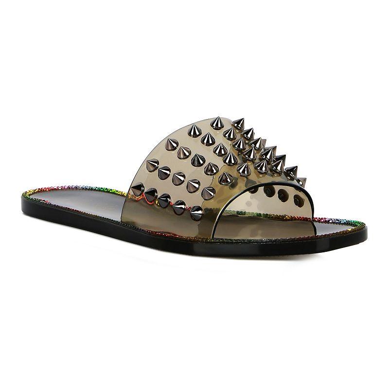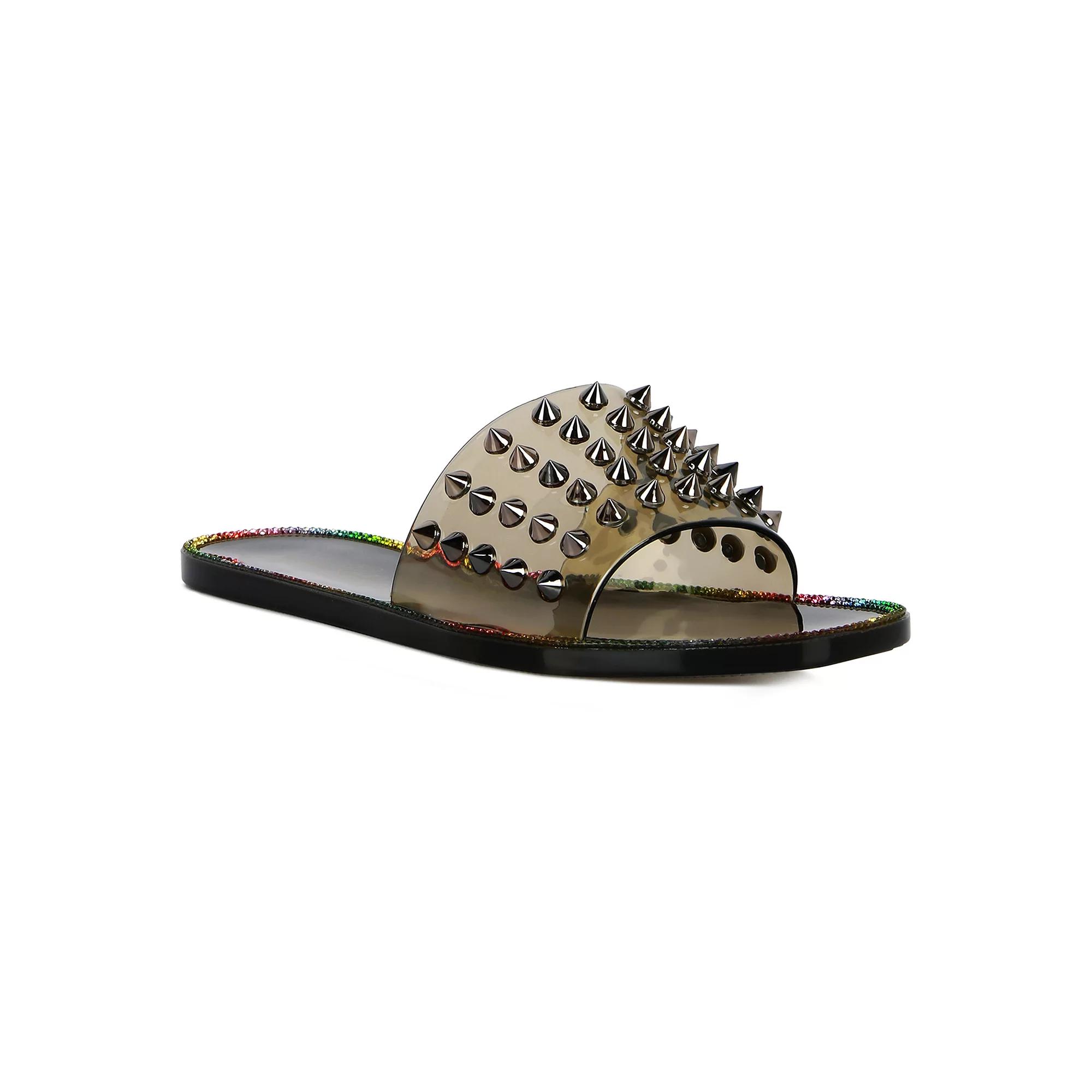 Add a little edge to your casual looks with these London Rag Bolly Punk women's studded jelly sandals.Click this FOOTWEAR GUIDE to find the perfect fit and more! Add a little edge to your casual looks with these London Rag Bolly Punk women's studded jelly sandals. Click this FOOTWEAR GUIDE to find the perfect fit and more! SHOE FEATURES Clear design upper Studded accentsSHOE CONSTRUCTION Rubber upper and outsoleSHOE DETAILS Open toe Slip-on Padded footbed Size: 8. Color: Black. Gender: female. Age Group: adult.