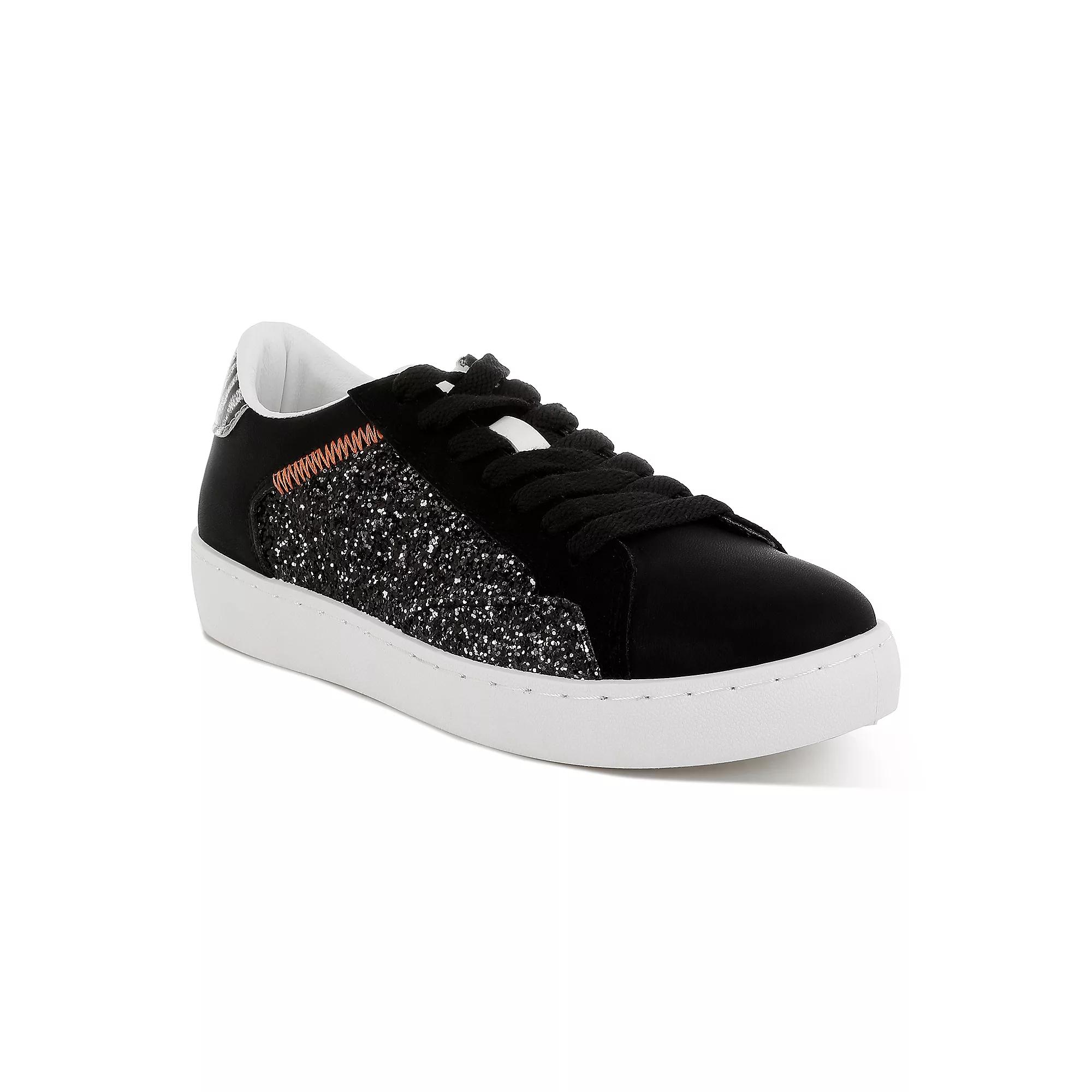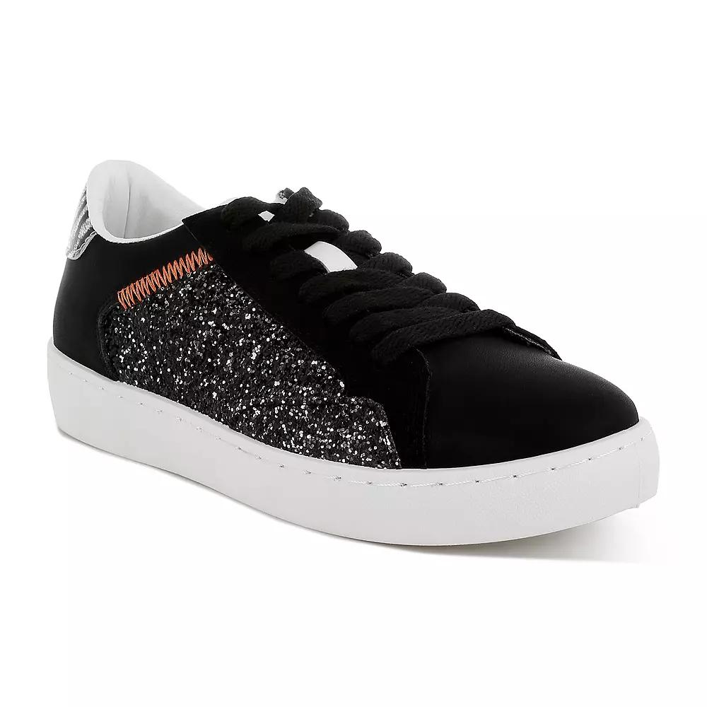 Step into style and comfort with these dazzling sneakers that add a sprinkle of sparkle to any outfit. The London Rag design perfectly blends playful flair with everyday wearability, making them your go-to choice for everything from brunch dates to spontaneous adventures. Click this FOOTWEAR GUIDE to find the perfect fit and more! - https://www.kohls.com/feature/shoesizeguide.jsp. FEATURES: Comfortable for all-day wear, Sparkling glitter accents. MATERIAL & CARE: Glitter and faux leather upper, TPR outsole, Polyurethane midsole, lining, and footbed, Spot clean. DETAILS: Lace-up closure, Slip-resistant outsole, Round toe, Imported. Size: 7. Color: Black. Gender: female. Age Group: adult. Material: SYNTHETIC.