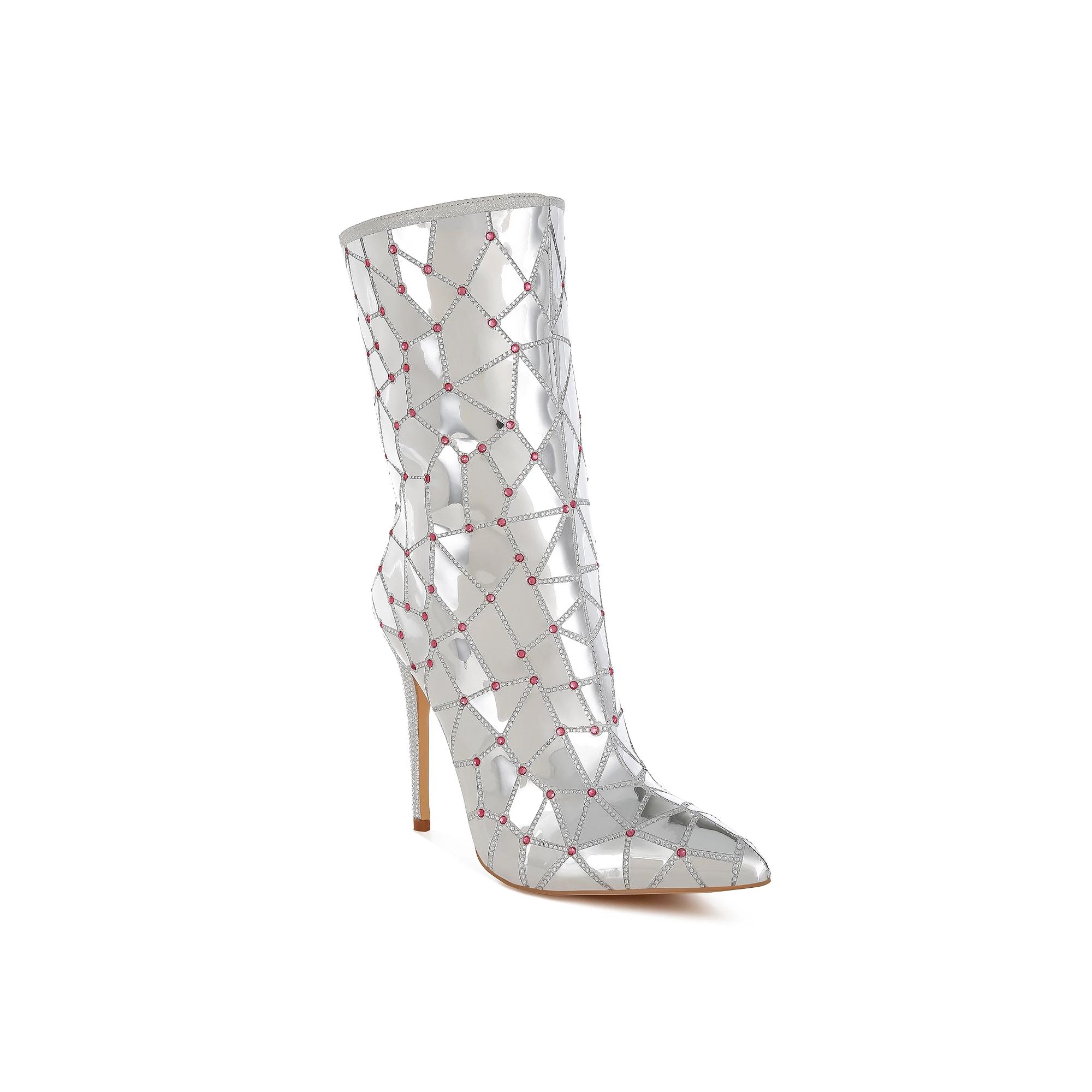 Shine bright with these stunning metallic embellished boots that effortlessly blend style and comfort. Designed by London Rag, they are perfect for making a statement while keeping your feet feeling great all day long. Click this FOOTWEAR GUIDE to find the perfect fit and more! - https://www.kohls.com/feature/shoesizeguide.jsp. FEATURES: Designed for all-day comfort, Soft materials for a cozy fit. DETAILS: Slip-on and zipper closure, Slip-resistant outsole, Round toe and pointed toe, Platform height: 3/4-in., Heel height: 4-in., Imported. FIT & SIZE: Mid-calf boot shaft, Boot shaft height: 9 1/2-in., Boot shaft circumference: 8 1/2-in. MATERIAL & CARE: Synthetic upper, Synthetic and TPR outsole, Polyurethane midsole and footbed, Spot clean care. Color: Silver. Gender: female. Age Group: adult.
