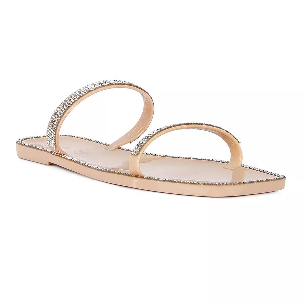 Step into style with these London Rag Fenta Diamante womens jelly slide sandals.Click this FOOTWEAR GUIDE to find the perfect fit and more! Step into style with these London Rag Fenta Diamante womens jelly slide sandals. Click this FOOTWEAR GUIDE to find the perfect fit and more! SHOE FEATURES Double strap upper Rhinestone accentsSHOE CONSTRUCTION Rubber upper and outsoleSHOE DETAILS Square toe Slip-on Padded footbed Size: 9. Color: Natural. Gender: female. Age Group: adult.