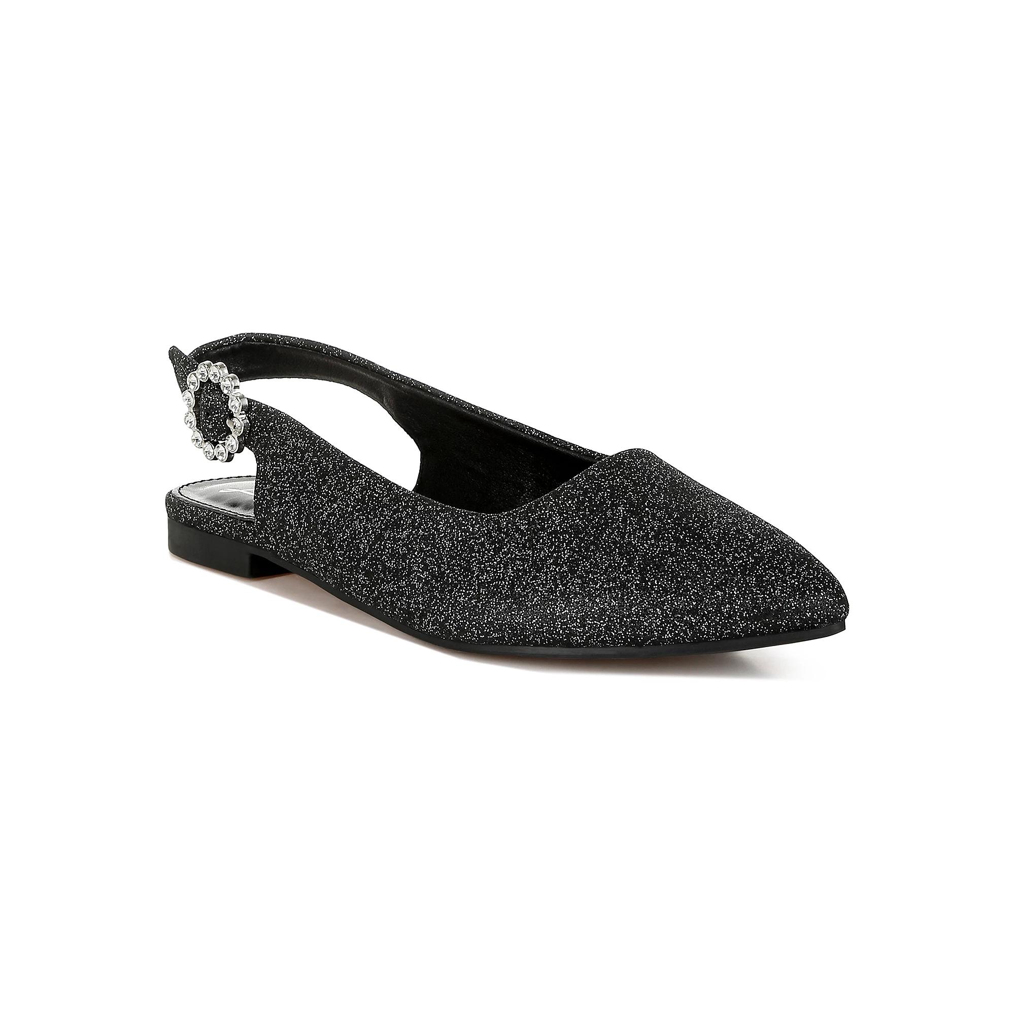 Add these stylish and comfortable London Rag Giora Mule Womens Casual Flats to your footwear collection. Click this FOOTWEAR GUIDE to find the perfect fit and more! SHOE CONSTRUCTION Glitter PU upper Polyurethane lining Polyurethane midsole TPR outsoleSHOE DETAILS Pointed toe Buckle closure Polyurethane footbed Slip-resistant outsole 0.39-in. heel 0.39-in. platform Spot clean Imported Size: 7. Color: Black. Gender: female. Age Group: adult.