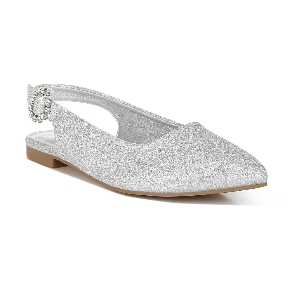Add these stylish and comfortable London Rag Giora Mule Women's Casual Flats to your footwear collection. Click this FOOTWEAR GUIDE to find the perfect fit and more! - https://www.kohls.com/feature/shoesizeguide.jsp. SHOE CONSTRUCTION: Glitter PU upper, Polyurethane lining, Polyurethane midsole, TPR outsole. SHOE DETAILS: Pointed toe, Buckle closure, Polyurethane footbed, Slip-resistant outsole, 0.39-in. heel, 0.39-in. platform, Spot clean, Imported. Size: 5. Color: Silver. Gender: female. Age Group: adult. Material: OTHER MATERIAL.