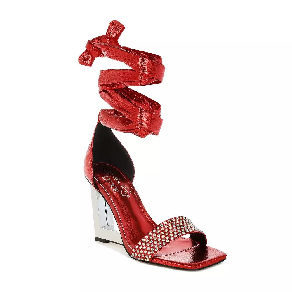 Unwind in style with these delightful sandals from London Rag, designed for comfort that lasts from morning strolls to evening outings. Picture yourself slipping into these elegant shoes, where every step feels like a gentle embrace, making them your go-to choice for effortless summer chic.Click this FOOTWEAR GUIDE to find the perfect fit and more!Unwind in style with these delightful sandals from London Rag, designed for comfort that lasts from morning strolls to evening outings. Picture yourself slipping into these elegant shoes, where every step feels like a gentle embrace, making them your go-to choice for effortless summer chic.Click this FOOTWEAR GUIDE to find the perfect fit and more!FEATURES Rhinestone details Spiral ankle strap ComfortableDETAILS Shiny fabric upper Polyurethane lining Polyurethane midsole TPR outsole Round toe Lace-up closure Polyurethane footbed Slip-resistant outsole 4-in. heel 0.75-in. platform Spot clean Imported Size: 8. Color: Red. Gender: female. Age Group: adult.