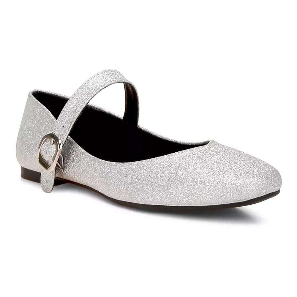 Add these beautiful and comfortable London Rag Herma Glitter Pin Buckle Womens Ballerinas to your footwear collection.Click this FOOTWEAR GUIDE to find the perfect fit and more! Add these beautiful and comfortable London Rag Herma Glitter Pin Buckle Womens Ballerinas to your footwear collection. Click this FOOTWEAR GUIDE to find the perfect fit and more! SHOE CONSTRUCTION Glitter PU upper Polyurethane lining Polyurethane midsole TPR outsoleSHOE DETAILS Pointed toe Buckle closure Polyurethane footbed Slip-resistant outsole 0.39-in. heel 0.39-in. platform Spot clean Imported Size: 8. Color: Silver. Gender: female. Age Group: adult.