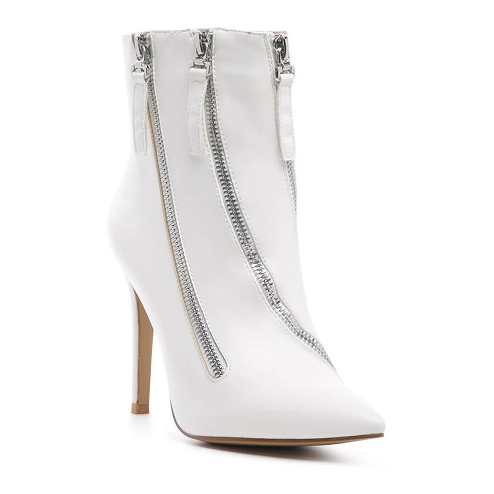 Step into chic style with these London Rag Hillary women's high heel ankle boots. Click this FOOTWEAR GUIDE to find the perfect fit and more! - https://www.kohls.com/feature/shoesizeguide.jsp. BOOT FEATURES: Multiple zipper design, Sleek stiletto heel. BOOT CONSTRUCTION: Polyurethane upper, Manmade lining and outsole, Polyurethane midsole. BOOT DETAILS: Pointed toe, Zipper closure, Padded footbed, 3-in. heel, 4.5-in. shaft, 11.70-in. circumference. Size: 10. Color: White. Gender: female. Age Group: adult. Material: SYNTHETIC.