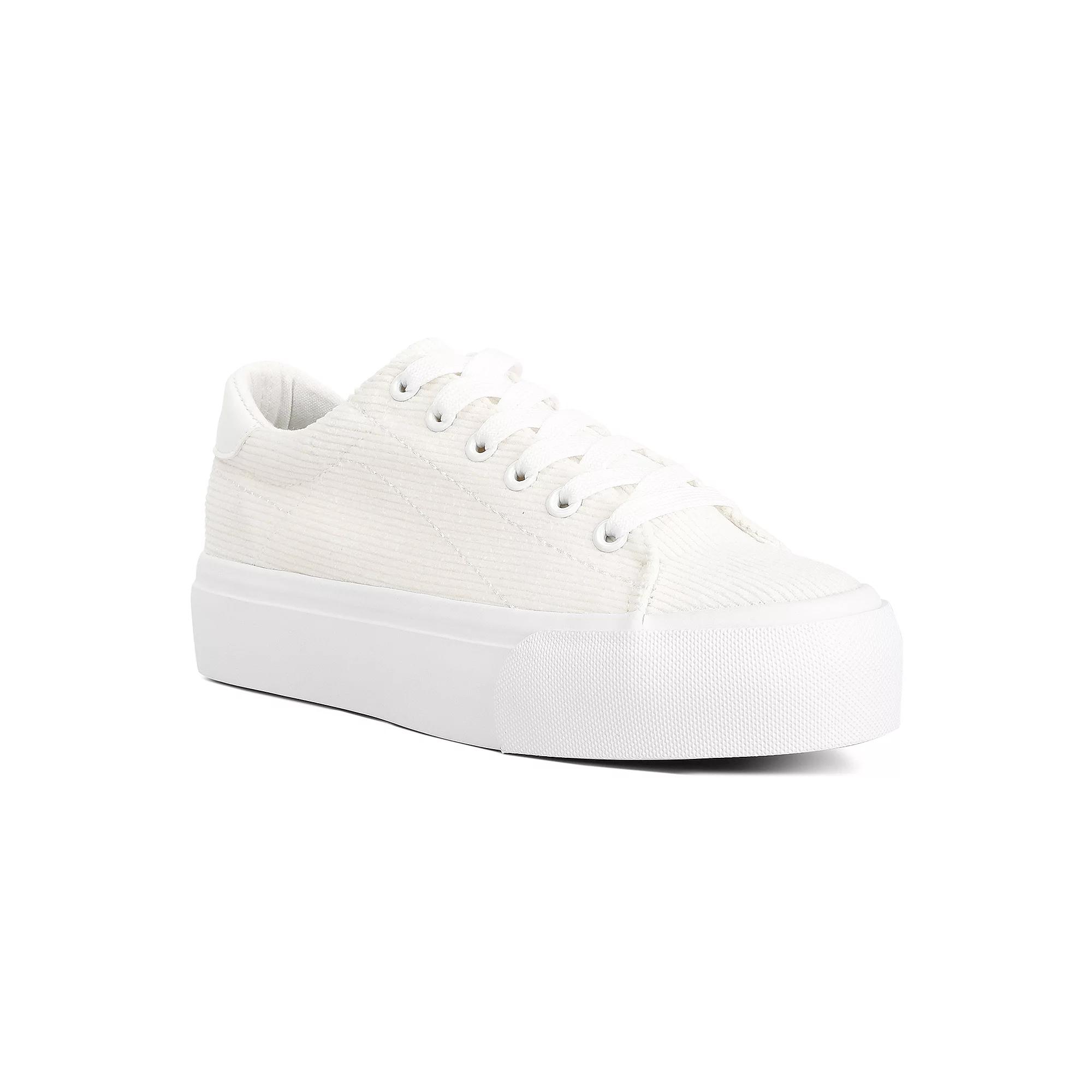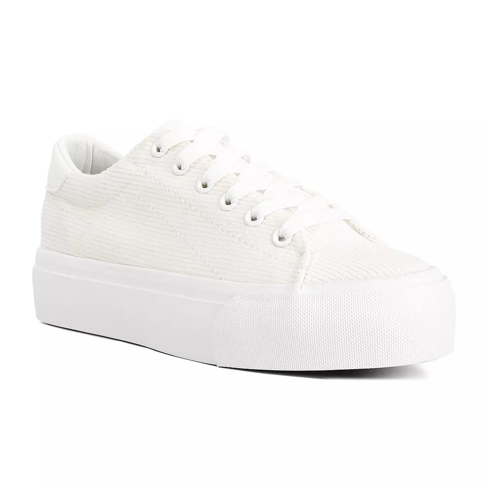 Dress these London Rag Hyra Solid Platform Canvas Shoes up or down for any day of the week. Click this FOOTWEAR GUIDE to find the perfect fit and more! - https://www.kohls.com/feature/shoesizeguide.jsp. FEATURES: Comfortable style. DETAILS: Polyurethane upper, Polyurethane lining, Polyurethane midsole, Corduroy outsole, Round toe, Lace-up closure, Polyurethane footbed, Slip-resistant outsole, Spot clean, Imported. Size: 9. Color: White. Gender: female. Age Group: adult. Material: SYNTHETIC.