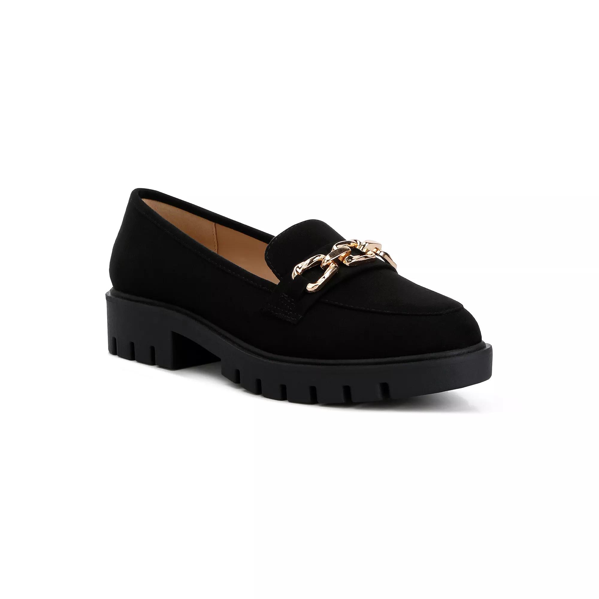 Experience effortless style with these chic loafers that redefine comfort. The London Rag loafers feature a modern chain link design, perfect for pairing with everything from tailored pants to casual jeans, making them a versatile addition to your wardrobe. Click this FOOTWEAR GUIDE to find the perfect fit and more! - https://www.kohls.com/feature/shoesizeguide.jsp. FEATURES: Designed for all-day comfort, Soft materials for a cozy fit. DETAILS: Round toe, Slip-on closure, Slip-resistant outsole, 1" heel height, Imported. MATERIAL & CARE: Micro suede upper, Polyurethane midsole and footbed, TPR outsole, Spot clean. Size: 6.5. Color: Black. Gender: female. Age Group: adult. Material: SYNTHETIC.