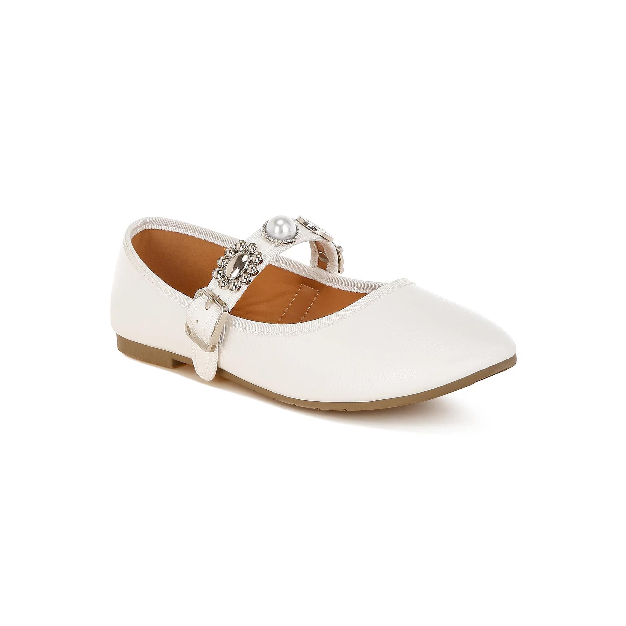 Step into comfort and style with these London Rag flats that feature delightful embellishments perfect for any occasion. With a design that's as easy on the eyes as it is on your feet, you'll feel fabulous while embracing every adventure, whether it's a casual brunch or an evening out with friends. Click this FOOTWEAR GUIDE to find the perfect fit and more! - https://www.kohls.com/feature/shoesizeguide.jsp. FEATURES: Comfortable fit. MATERIAL & CARE: Faux leather upper, Polyurethane midsole and lining, Man made material outsole, Polyurethane footbed, Spot clean. DETAILS: Round toe, Buckle closure, Slip-resistant outsole, 0.8-in. heel height, Imported. Size: 7. Color: White. Gender: female. Age Group: adult. Material: SYNTHETIC.