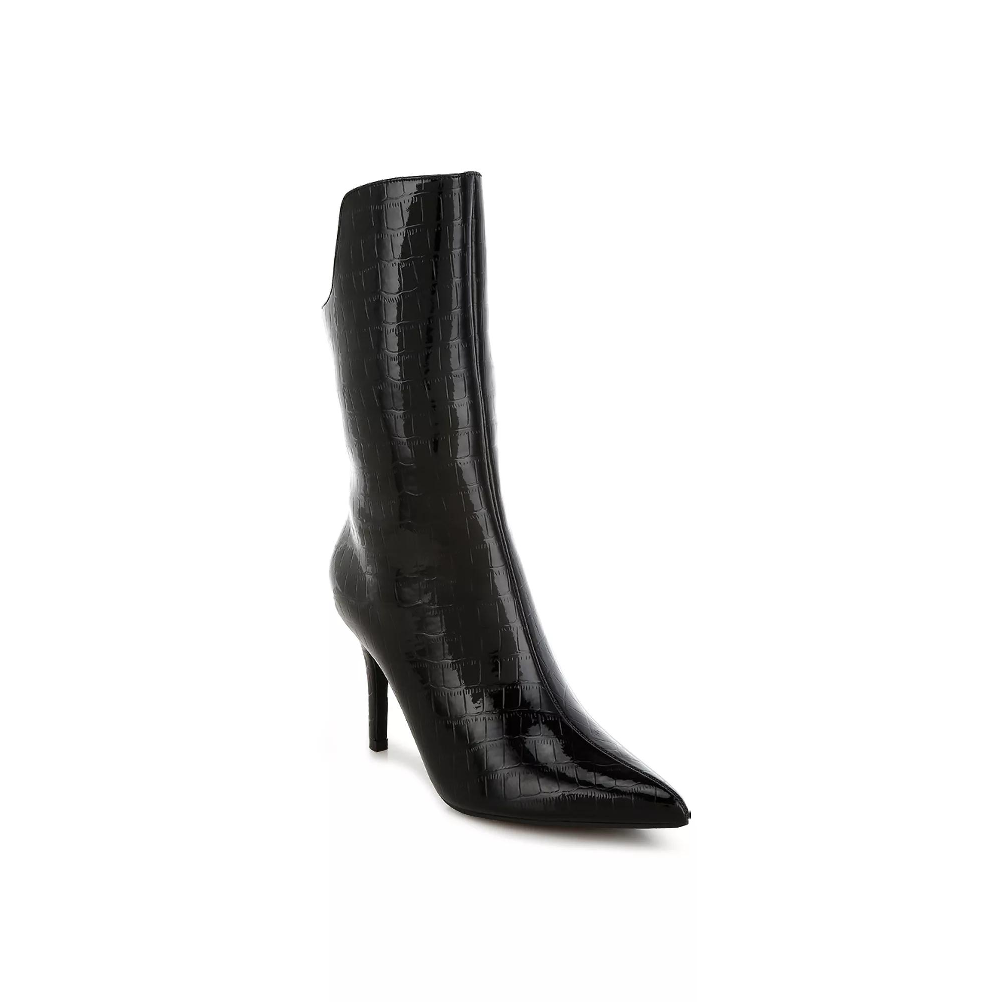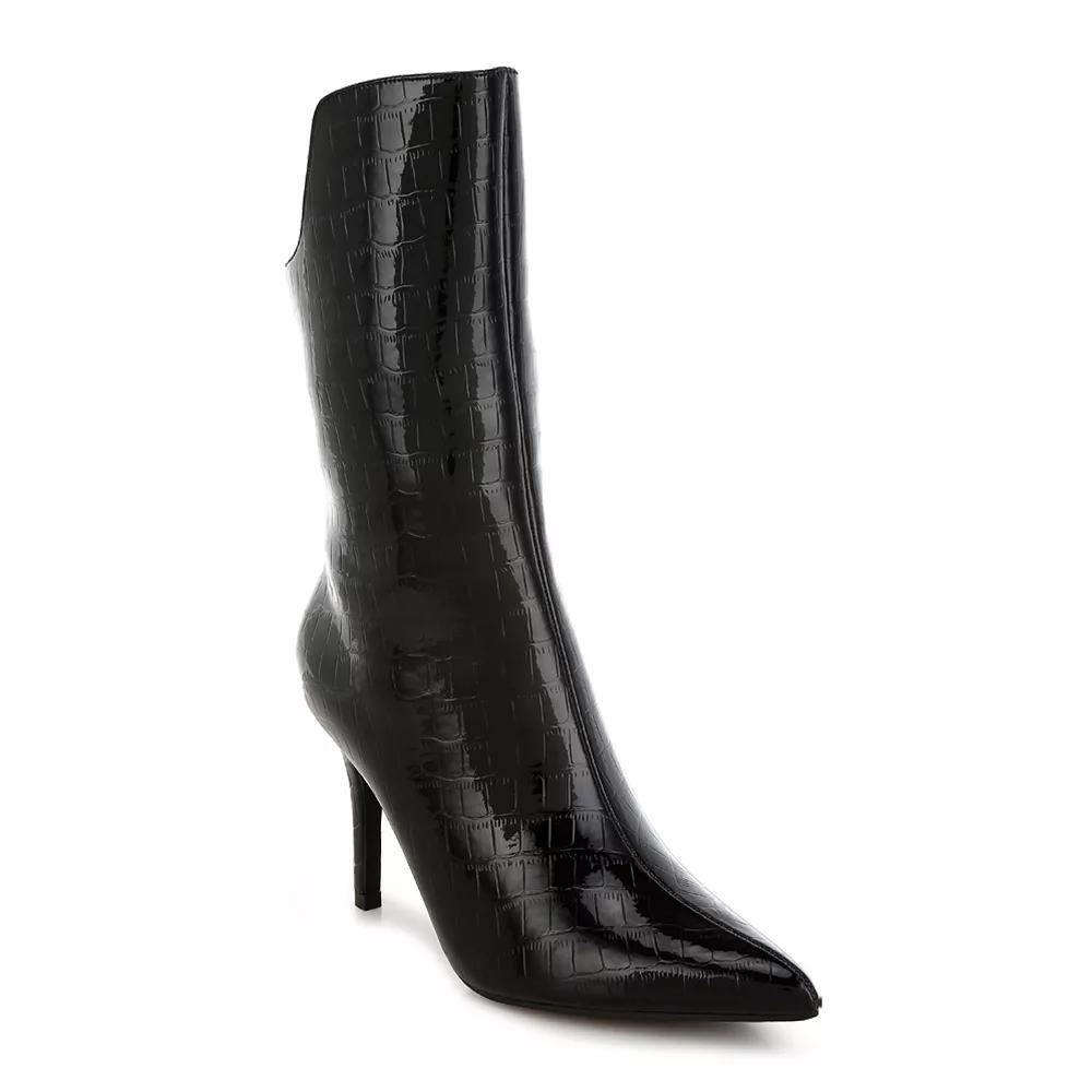 Unleash your fierce side with these stunning stiletto mid-calf boots that boast a chic croco design. London Rag delivers both style and comfort, making these boots a must-have addition to elevate any outfit, whether you're hitting the city streets or attending a stylish gathering. Click this FOOTWEAR GUIDE to find the perfect fit and more! - https://www.kohls.com/feature/shoesizeguide.jsp. FEATURES: Designed for all-day comfort, Soft materials for a cozy fit. DETAILS: Zipper closure, Slip-resistant outsole, Pointed toe, Platform height: 3/4-in., Heel height: 3 1/2-in., Imported. FIT & SIZE: Mid-calf boot shaft, Boot shaft height: 10 1/2-in., Boot shaft circumference: 9 1/2-in. MATERIAL & CARE: Faux leather and microfiber upper, TPR outsole, Polyurethane midsole, lining and footbed, Spot clean. Size: 5. Color: Black. Gender: female. Age Group: adult. Material: SYNTHETIC.