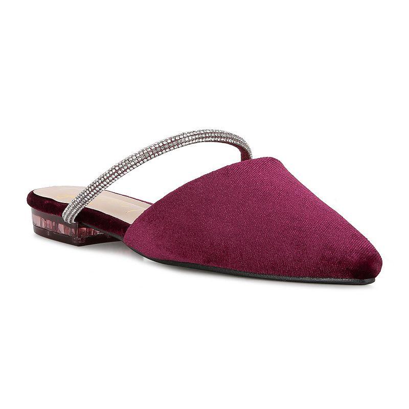 Step into a chic look with these London Rag Laren Diamante womens mules.Click this FOOTWEAR GUIDE to find the perfect fit and more! Step into a chic look with these London Rag Laren Diamante womens mules. Click this FOOTWEAR GUIDE to find the perfect fit and more! FEATURES Simulated crystal detail on strapDETAILS Synthetic upper, lining and outsole Pointed toe Slip-on Padded footbed Treaded outsole 0.39-in. heel Spot clean Imported Size: 10. Color: Dark Red. Gender: female. Age Group: adult.