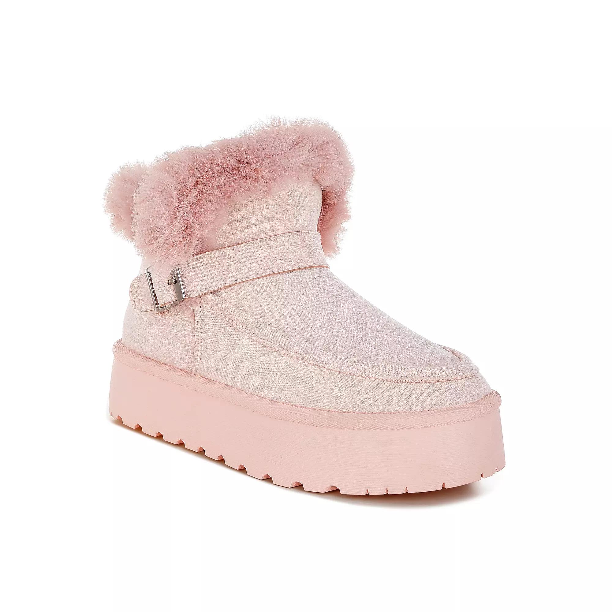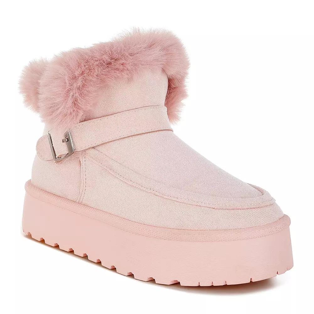 Step into cozy chic with these ankle boots that blend comfort with effortless style. The plush lining keeps your toes toasty while the pin buckle detail adds a touch of flair, making every winter outing feel like a fashion statement. Click this FOOTWEAR GUIDE to find the perfect fit and more! - https://www.kohls.com/feature/shoesizeguide.jsp. FEATURES: Soft and plush lining for enhanced comfort, Stylish design with a trendy buckle detail. DETAILS: Buckle closure, Slip-resistant outsole, Round toe, 1.5" heel height, 1" platform height, Imported. FIT & SIZE: Stretch boot shaft, 7.5 inch boot shaft height, 6.5 inch boot shaft circumference. MATERIAL & CARE: Microfiber upper, TPR outsole, Polyurethane midsole and footbed, Polyurethane lining, Contains faux fur, Spot clean. Color: Pink. Gender: female. Age Group: adult. Material: SYNTHETIC.