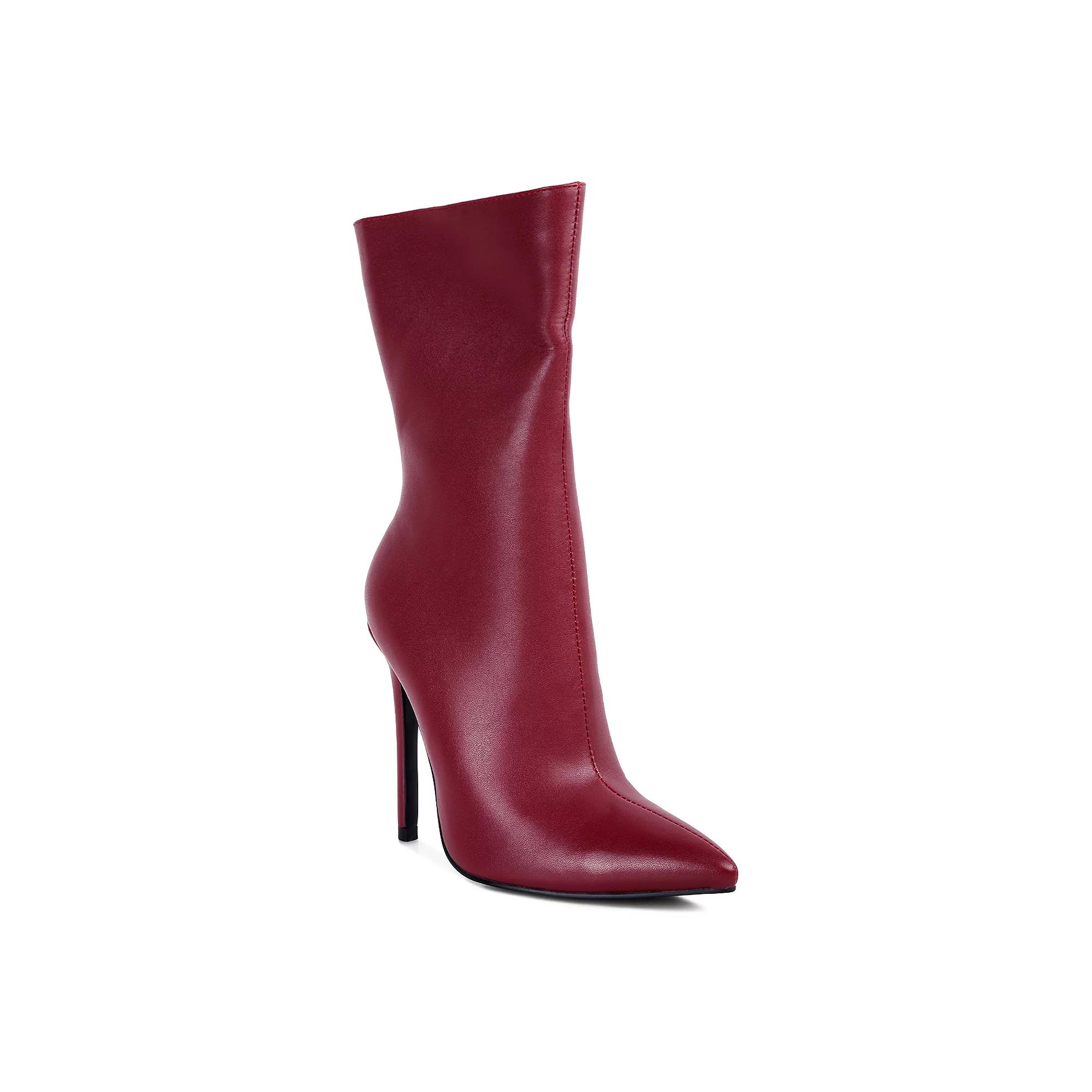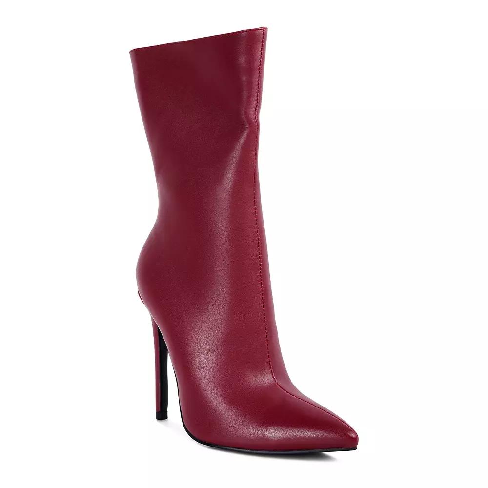 Make a statement with these London Rag Micah stiletto high ankle boots. Click this FOOTWEAR GUIDE to find the perfect fit and more! - https://www.kohls.com/feature/shoesizeguide.jsp. SHOE FEATURES: Sleek style, Padded footbed for all day comfort, Zipper closure for a secure fit. SHOE CONSTRUCTION: Faux leather upper and outsole, Polyester lining, Polyurethane midsole. SHOE DETAILS: Pointed toe, Zipper closure, Padded footbed, 3.5-in. heel height, 0.39-in. platform height, 7.48-in. shaft, 9.173-in. circumference, Mid-calf, Spot clean, Imported. Color: Burgundy. Gender: female. Age Group: adult. Material: SYNTHETIC.