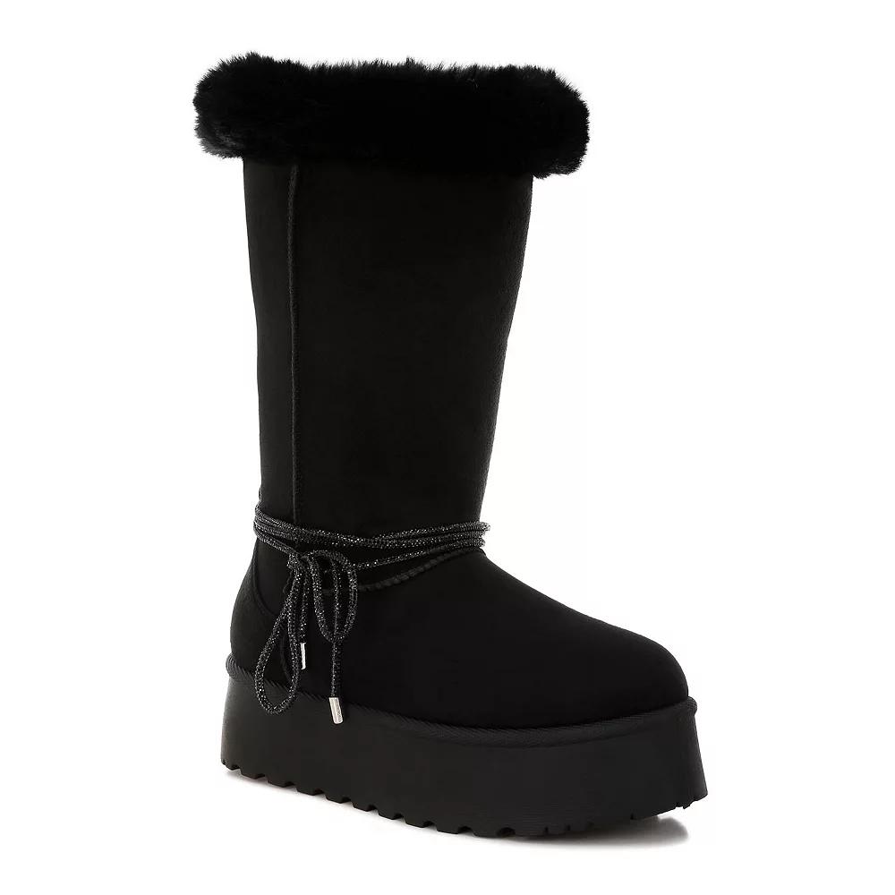 Step into the perfect blend of comfort and style with these chic snow boots. Designed by London Rag, these boots feature an inviting fur collar and an anti-skid sole to keep you cozy and secure while navigating frosty sidewalks, so you can strut your stuff with confidence even when the weather is frosty. Click this FOOTWEAR GUIDE to find the perfect fit and more! - https://www.kohls.com/feature/shoesizeguide.jsp. FEATURES: Soft and plush lining for enhanced comfort, Stylish design with a cozy fur trim. DETAILS: Lace-up closure, Slip-resistant outsole, Round toe, 1.5" heel height, 1" platform height, Imported. FIT & SIZE: Stretch boot shaft, 11.5 inch boot shaft height, 8.5 inch boot shaft circumference. MATERIAL & CARE: Microfiber upper, TPR outsole, Polyurethane midsole and footbed, Polyurethane lining, Contains faux fur, Spot clean. Size: 10. Color: Black. Gender: female. Age Group: adult. Material: SYNTHETIC.
