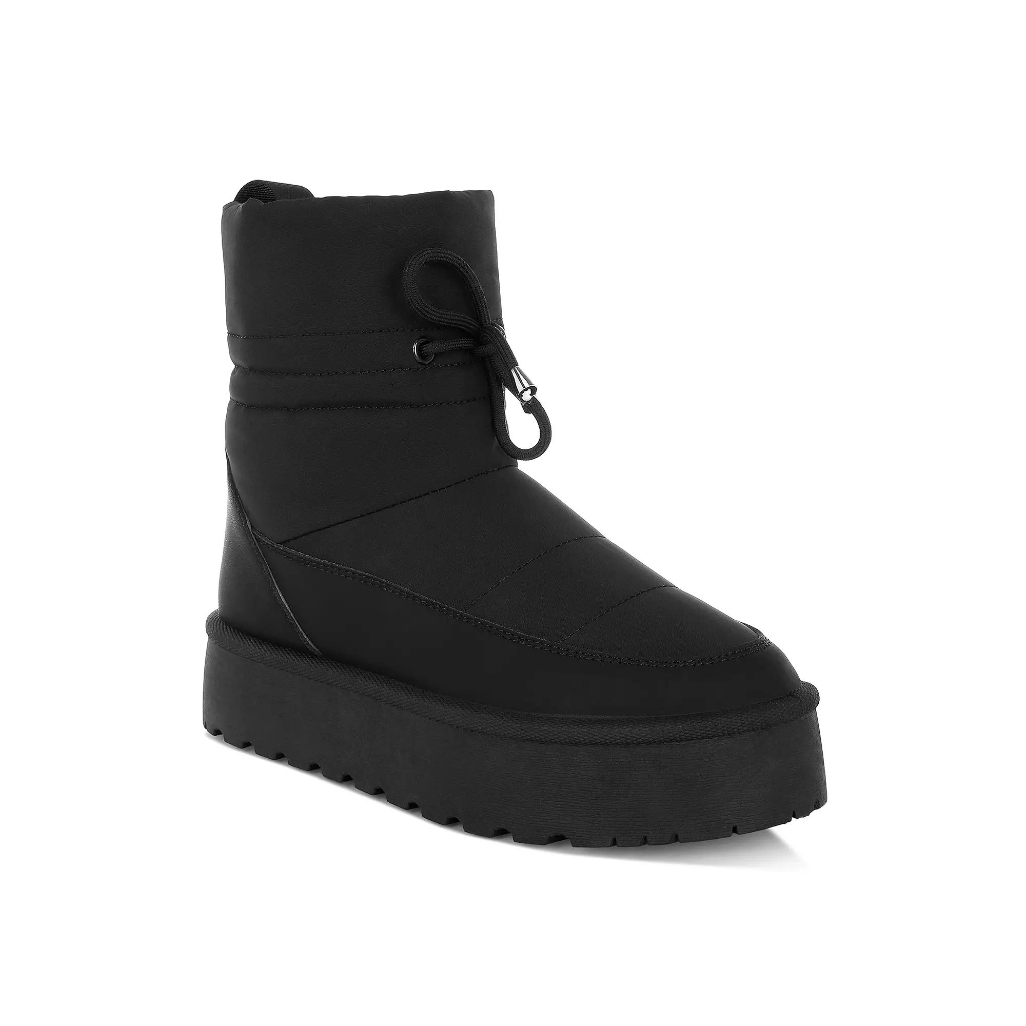 Step into cozy comfort with these chunky ankle snow boots that are perfect for turning winter strolls into stylish adventures. With a design that's as comfy as it is chic, you'll feel ready to tackle any snowy outing without sacrificing an ounce of warmth or flair. Click this FOOTWEAR GUIDE to find the perfect fit and more! - https://www.kohls.com/feature/shoesizeguide.jsp. FEATURES: Designed for all-day comfort, Stylish and modern silhouette. DETAILS: Lace-up closure, Slip-resistant outsole, Round toe, 0.75" platform height, 1.5" heel height, Imported. FIT & SIZE: Ankle boot shaft detail, 9.5 inch boot shaft height, 7.5 inch boot shaft circumference. MATERIAL & CARE: Nylon upper, TPR outsole, Polyurethane midsole and footbed, Polyurethane lining, Contains faux fur, Spot clean. Size: 8.5. Color: Black. Gender: female. Age Group: adult.