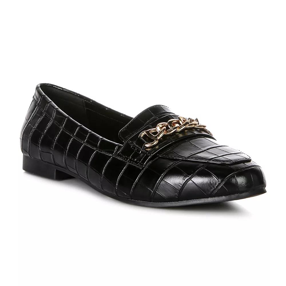 Step into a chic look with these London Rag Palmetta womens loafers.Click this FOOTWEAR GUIDE to find the perfect fit and more! Step into a chic look with these London Rag Palmetta womens loafers. Click this FOOTWEAR GUIDE to find the perfect fit and more! FEATURES Metal chain detail Croc embossed designDETAILS Synthetic upper, lining and outsole Almond toe Slip-on Padded footbed Treaded outsole 0.39-in. heel Spot clean Imported Size: 10. Color: Black. Gender: female. Age Group: adult.