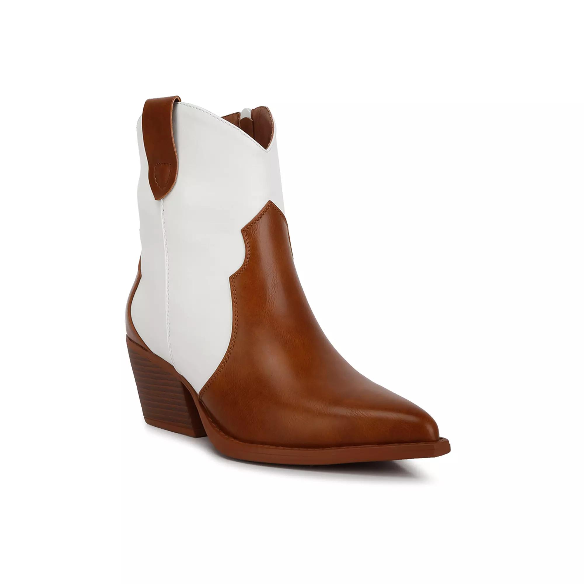 Wild West meets modern style in the Wales bootie from London Rag. This dual-tone boot comes with a side zipper and pull tabs to ensure easy wear and a lightly padded footbed for better underfoot support. The well constructed block heel adds to its stability and overall appeal. Click here for Boot Measuring Guide.