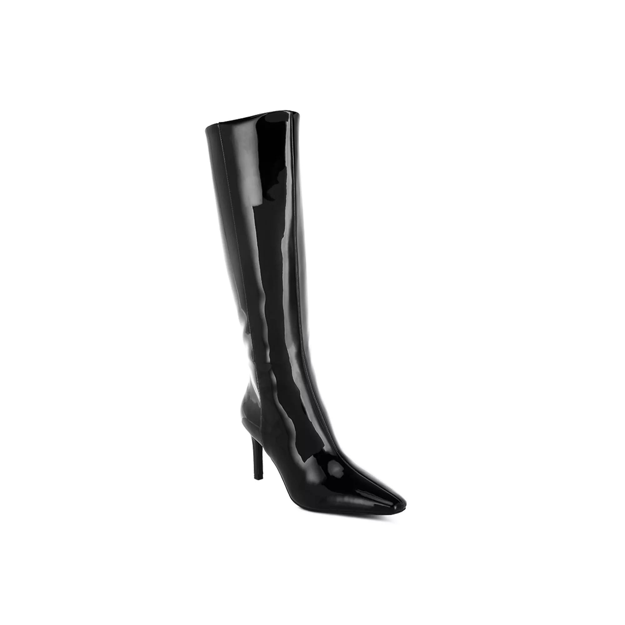 Step into style and comfort with these knee-high beauties that are ready to elevate any outfit. Whether you're strutting down the street or heading to brunch, the sleek design ensures you'll look fabulous while feeling cozy on your feet. Click this FOOTWEAR GUIDE to find the perfect fit and more! - https://www.kohls.com/feature/shoesizeguide.jsp. FEATURES: Designed for all-day comfort, Sleek, glossy finish for a modern look. DETAILS: Zipper closure, Slip-resistant outsole, Pointed toe, 0.75" platform height, 3" heel height, Imported. FIT & SIZE: Mid-calf boot shaft, 14.5 inch boot shaft height, 8.5 inch boot shaft circumference. MATERIAL & CARE: Patent faux leather upper, TPR outsole, Polyurethane midsole, lining and footbed, Spot clean. Size: 9. Color: Black. Gender: female. Age Group: adult. Material: SYNTHETIC.