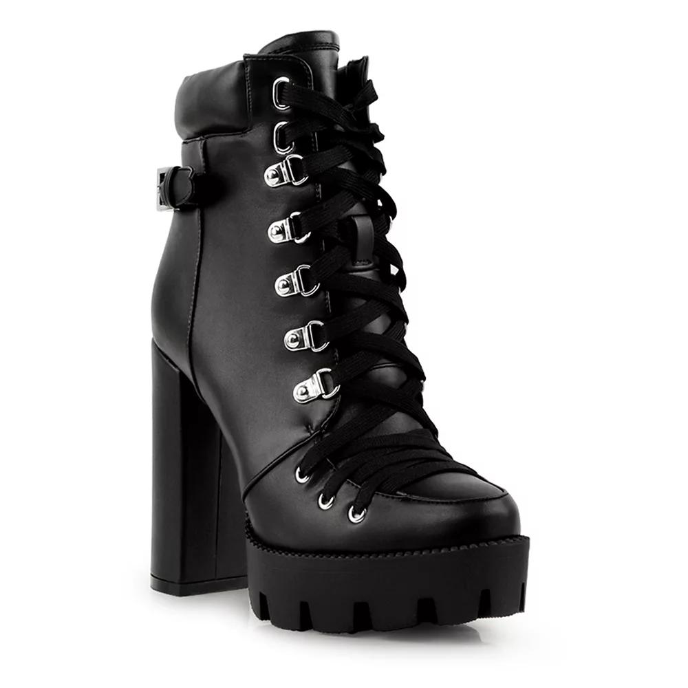 Add a stylish edge to your looks with these London Rag Willow women's combat boots.Click this FOOTWEAR GUIDE to find the perfect fit and more! Add a stylish edge to your looks with these London Rag Willow women's combat boots. Click this FOOTWEAR GUIDE to find the perfect fit and more! SHOE FEATURES Buckle detail Block heel and platform for added height Lugged outsoleSHOE CONSTRUCTION Polyurethane upper, lining and midsole Synthetic outsoleSHOE DETAILS Pointed toe Lace-up closure Padded footbed 4.75-in. heel 4.5-in. shaft 11.5-in. circumference Size: 10. Color: Black. Gender: female. Age Group: adult.