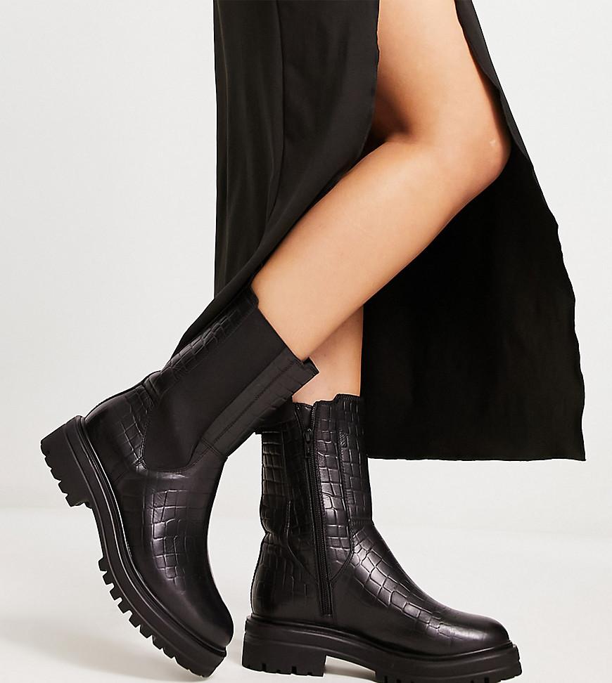 London Rebel Leather Wide Fit chunky chelsea boot croc