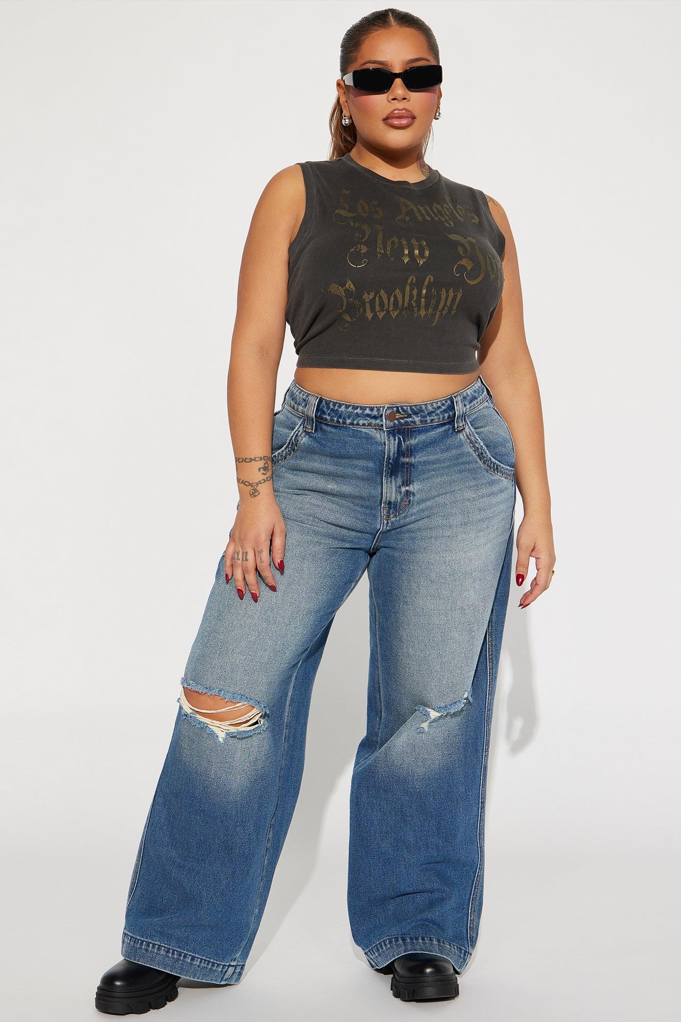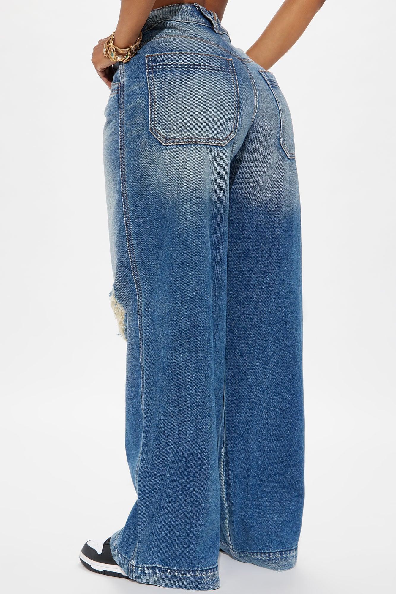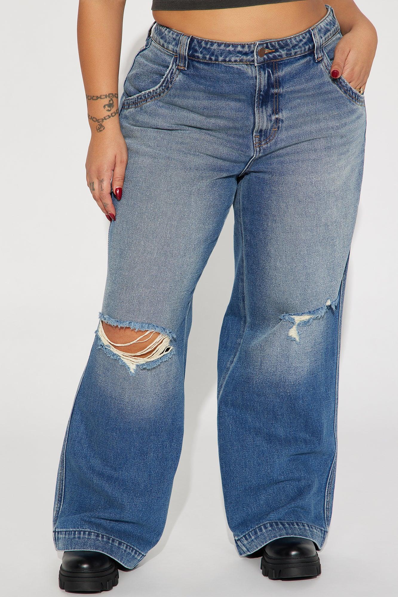Available In Medium Wash. Wide Leg Jean Ripped Tinted 4 Pocket 32" Inseam 12.5" Rise Non Stretch Disclaimer: Due To The Specialized Wash & Distressing Process, Each Garment Is Unique. 94% Cotton 6% Rayon Imported California Proposition 65 WARNING: Cancer and Reproductive Harm - www.P65Warnings.ca.gov.