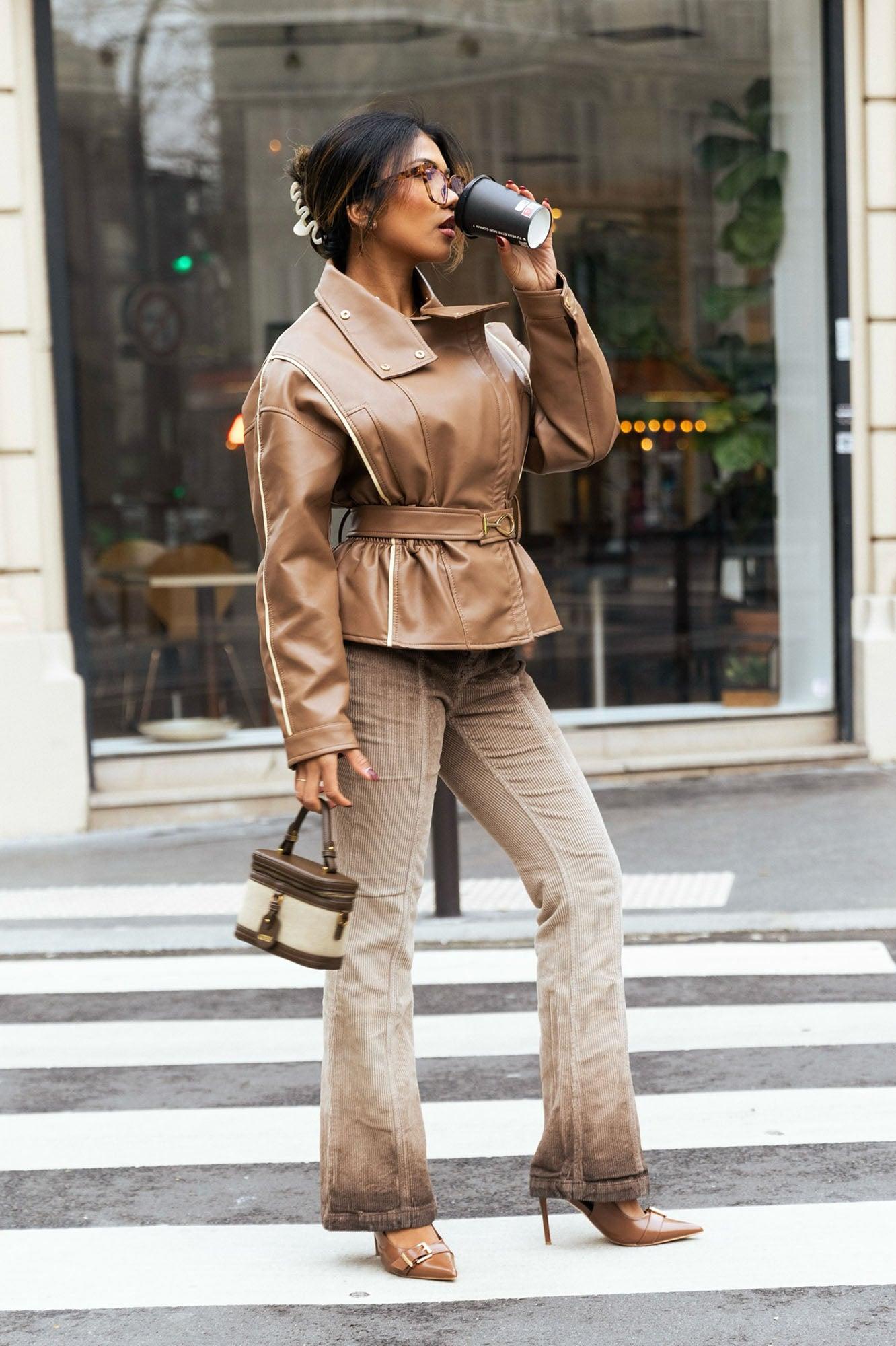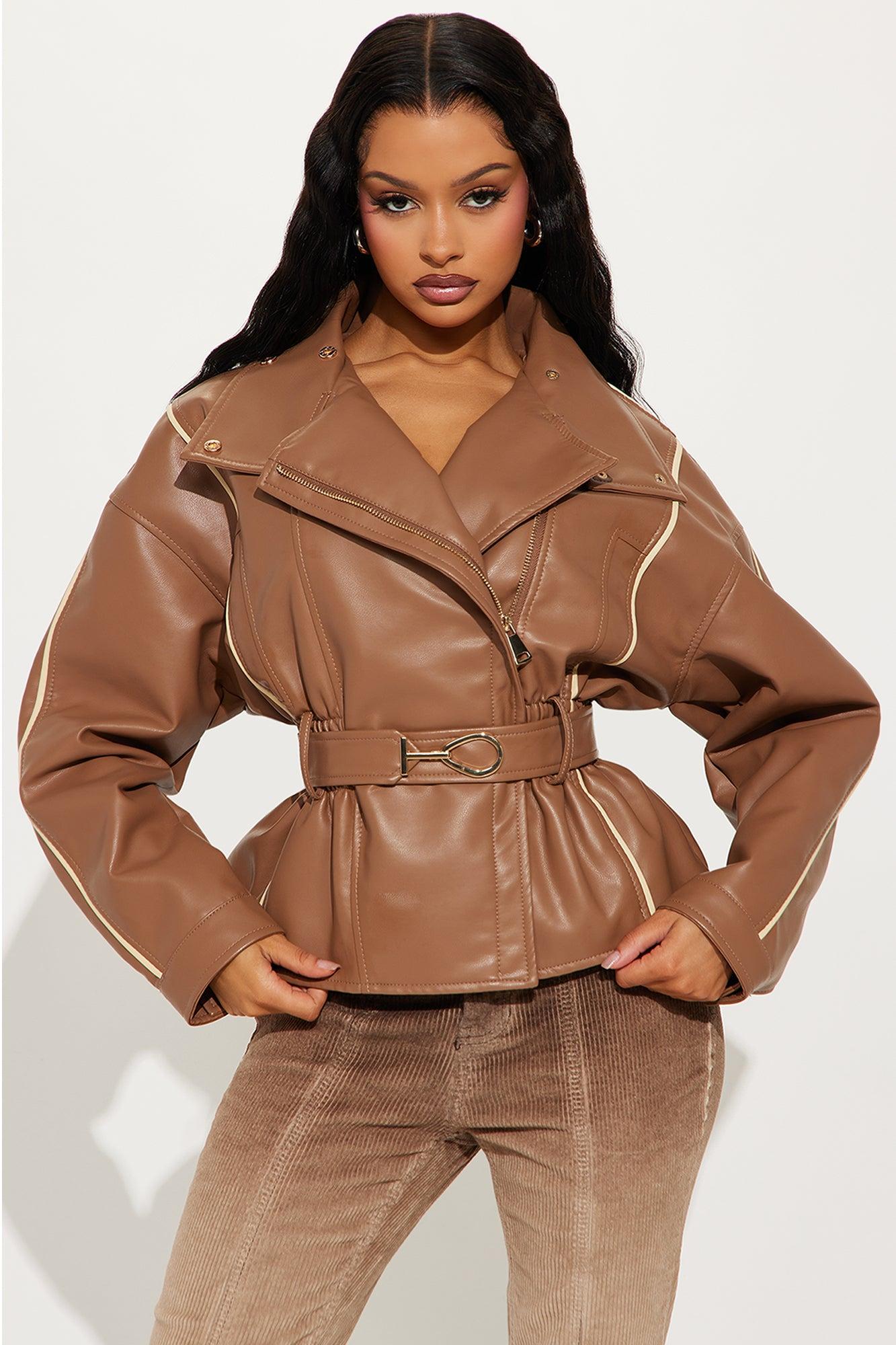 London Streets Faux Leather Jacket - Brown Combo