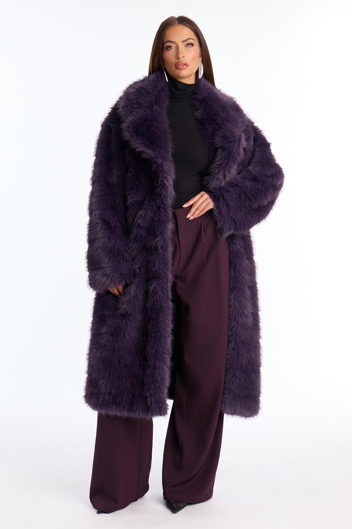 London Weekends Faux Fur Trench - Plum Female