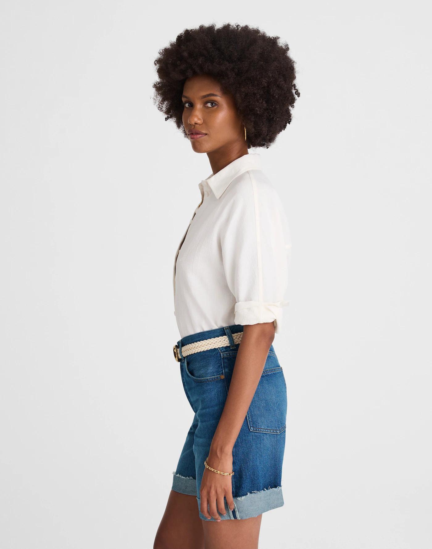 Long Baggy Cuffed Jean Shorts in Mifflin Wash