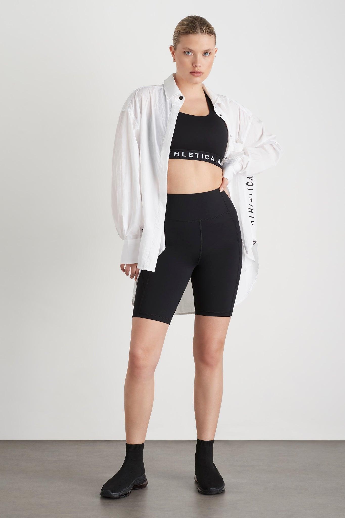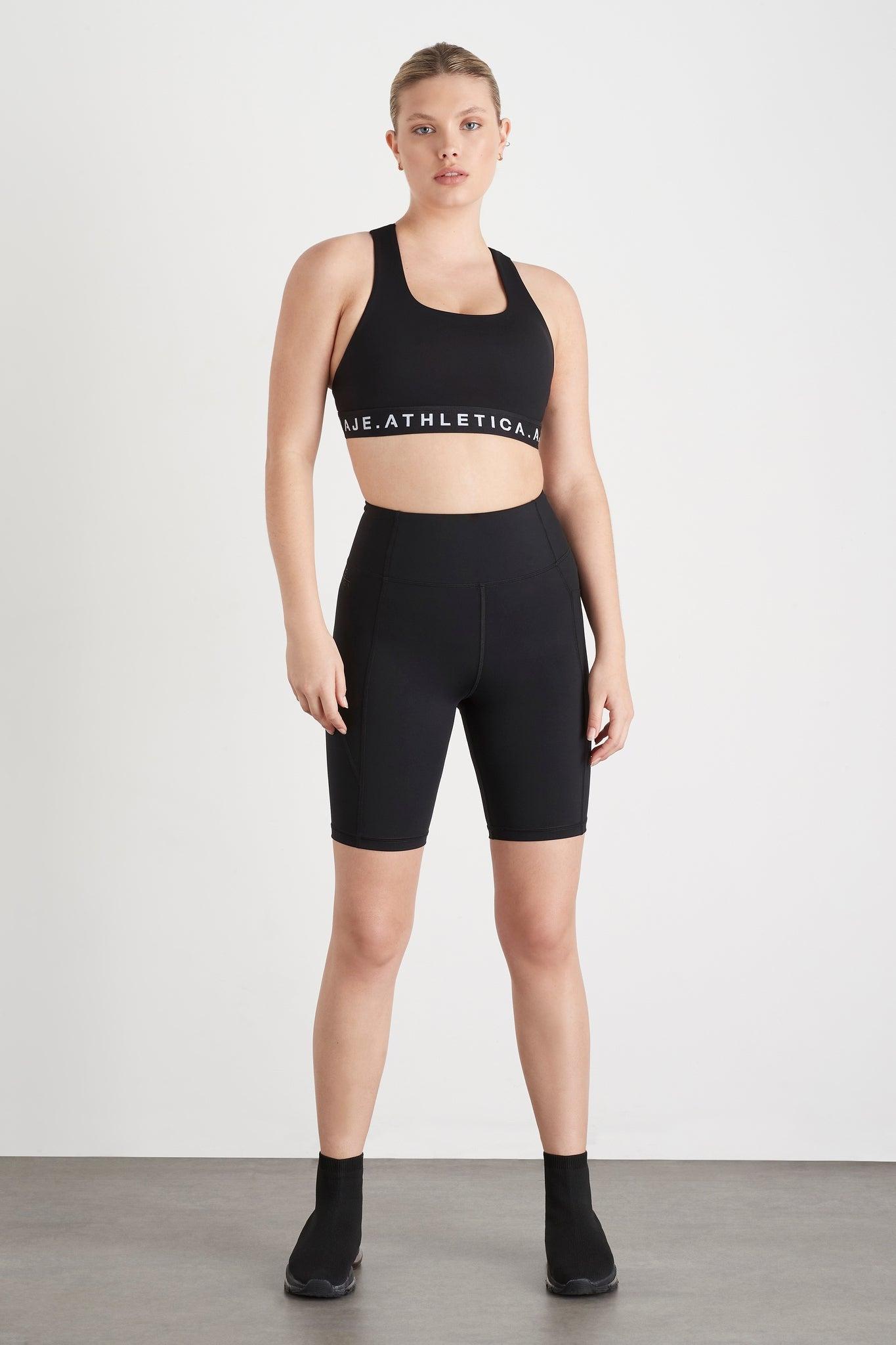 PRODUCT DETAILS High waisted bike shorts Mid length Internal mesh at waistband for enhanced core support Matte rubber A.A logo at right hip Pocket at left leg Four-way stretch for durability and freedom of movement Sweat-wicking properties SIZE AND FIT True to size Cynthia wears a size 8/S and is 178cm in height Clare wears a size 12/L and is 175cm in height Kaitlyn wears a size 16/XXL and is 180cm in height FABRICATION 70% Recycled Nylon 30% Nylon Delicate Cold Hand or Machine Wash