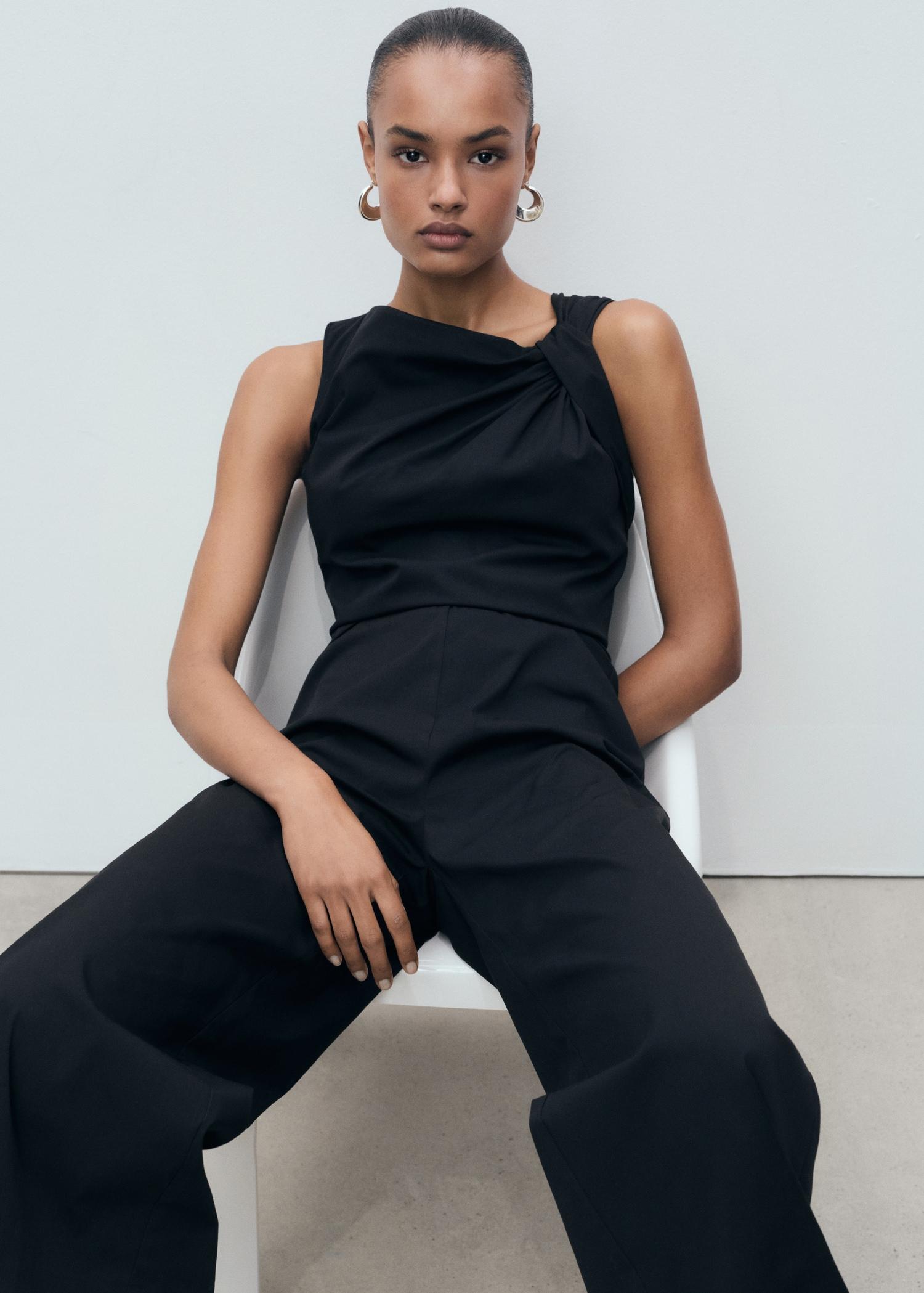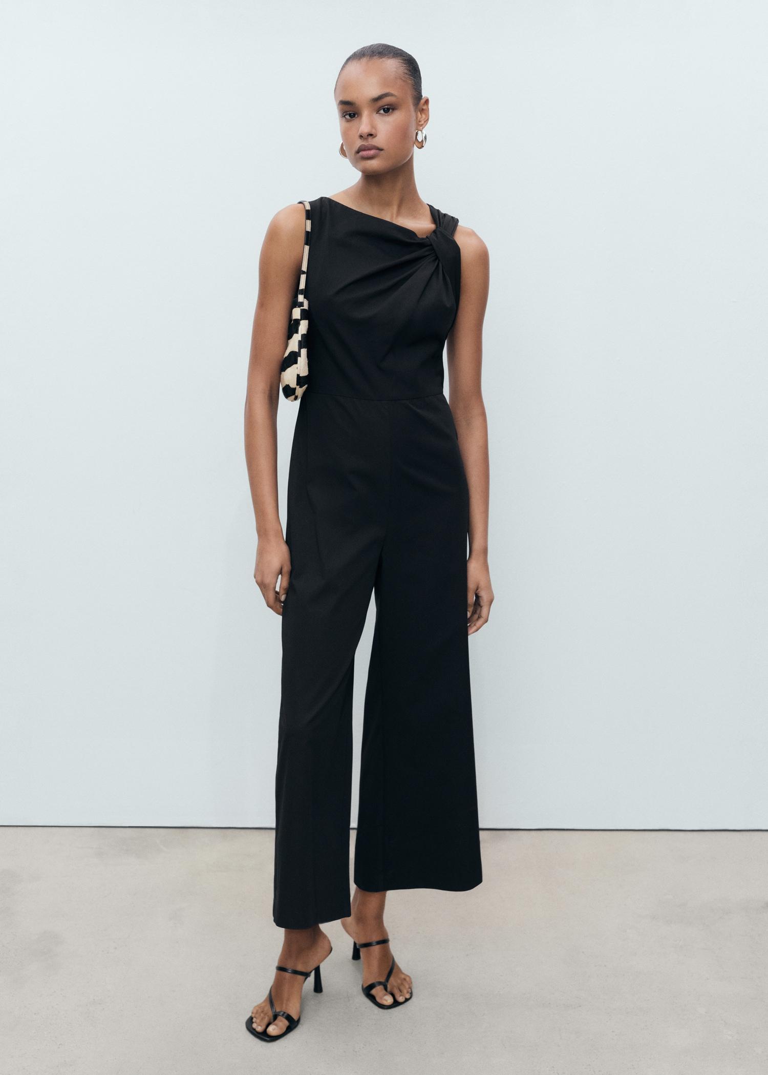 Long culotte jumpsuit with draped neck - Women | MANGO USA