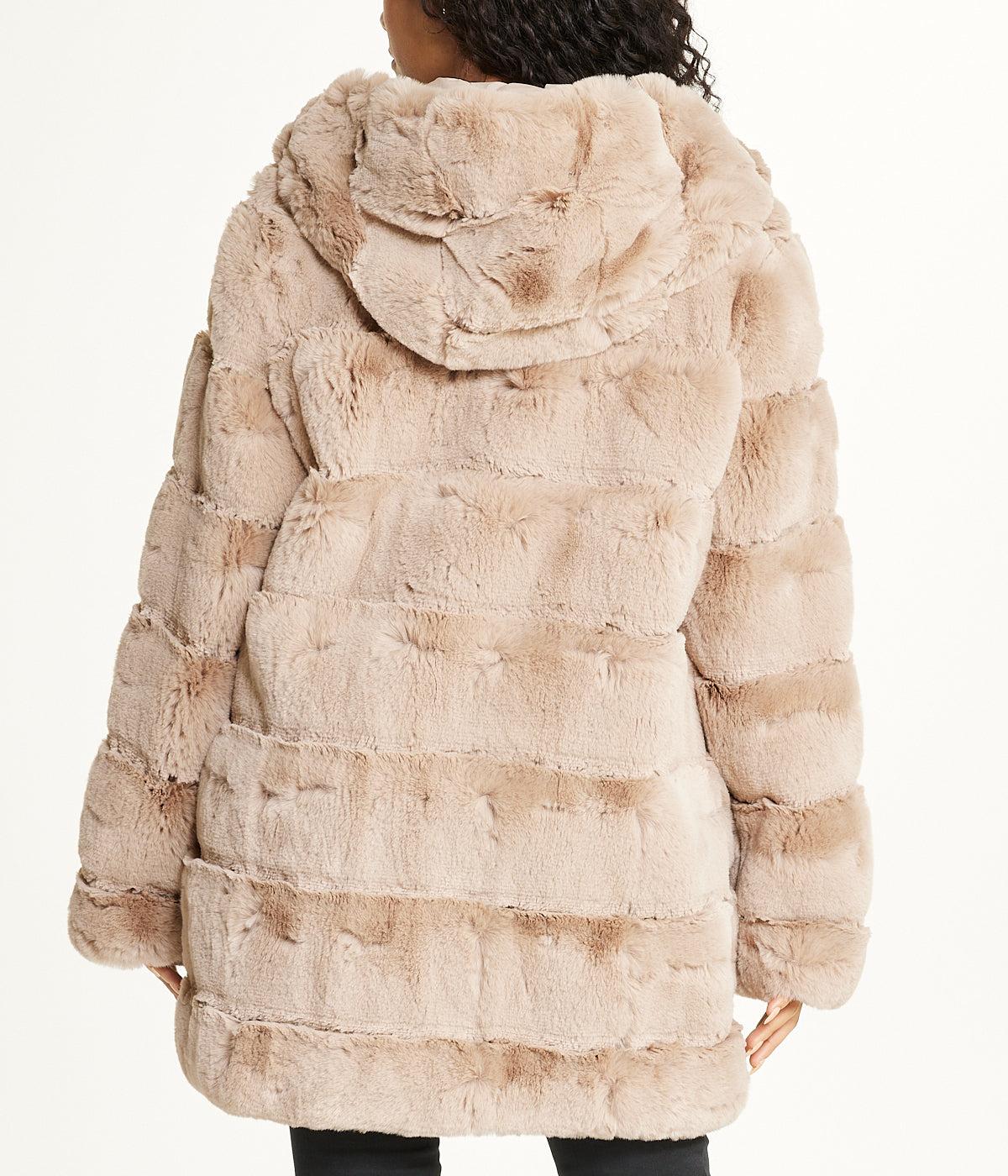 Long Faux Fur With Hood Hazelnut